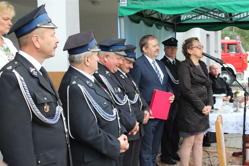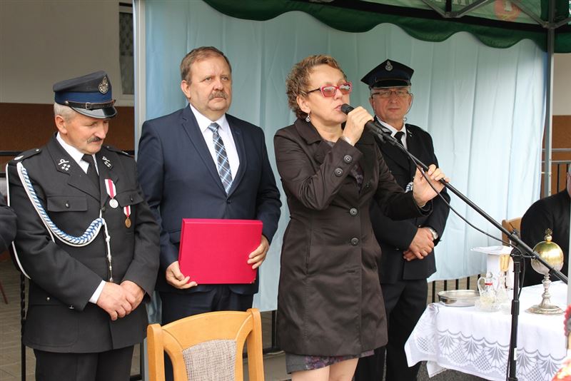 - Jest nam niezmiernie miło, że możemy uczestniczyć w tej wspaniałej uroczystości. Wyrażamy swoją wdzięczność dla Was druhowie i druhny, bo jednym z zadań władz powiatowych jest dbałość o bezpieczeństwo mieszkańców całego powiatu, a Wy odgrywacie tu znaczącą rolę. Strażacy ochotnicy są zwykle pierwszymi, którzy mkną do zdarzenia, niejednokrotnie z narażeniem swojego zdrowia i życia. Wasza heroiczna postawa zasługuje na najwyższe uznanie, zdecydowanie zwiększa skuteczność w powodzenie akcji ratunkowej. Znakomicie współpracujecie ze strażą powiatową, dziękujemy Wam za to wszystko. Z okazji tego pięknego jubileuszu życzymy, by bogata historia jednostki w Dachowej była przyczynkiem do dalszej efektywnej pracy na rzecz mieszkańców i przyszłych pokoleń. Niech społeczna służba przynosi pełną satysfakcję i radość. – mówiła Jolanta Gonta, która wspólnie z wicestarostą Tadeuszem Głuchowskim wręczyła druhom okolicznościowy upominek.
