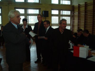 Starosta Józef Gołębiowski rozpoczął punkt dotyczący podjęcia uchwał propozycją wyboru na członka Zarządu Powiatu radnego Wiktora Gajdy. W tajnym głosowaniu Wiktor Gajda otrzymał 7 głosów za, 12 przeciwnych, 2 radnych wstrzymało się od głosu. W związku z tym decyzję o wyborze członka Zarządu przełożono na następną sesję.