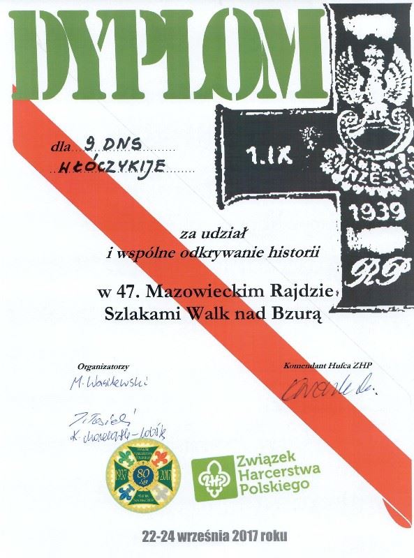 Harcerze z Zespołu Szkół w Erminowie uczestniczyli w 47 Mazowieckim Rajdzie Szlakami Walk nad Bzurą, który został zorganizowany przez Hufiec ZHP Sochaczew.