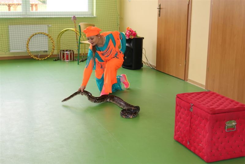 Chętni uczniowie mieli możliwość choć na chwilę pojawić się na scenie i spróbować swoich sił w sztuczkach cyrkowych.