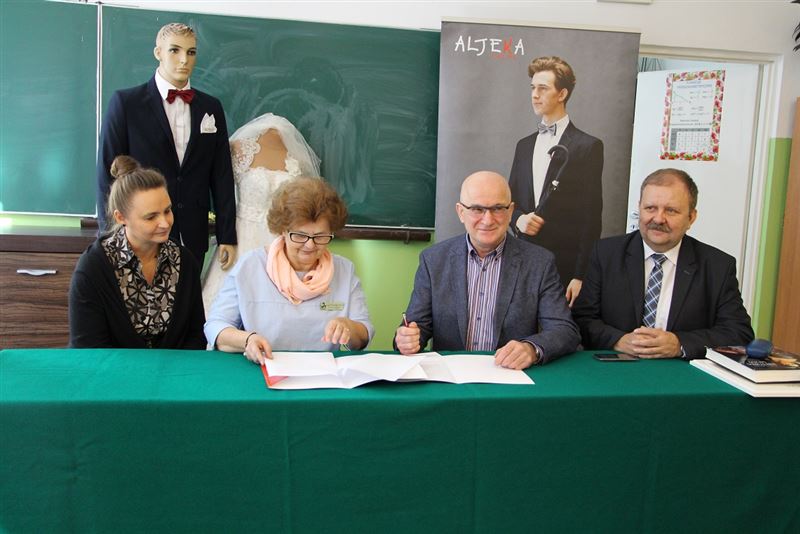 W ubiegły czwartek, 12 października w siedzibie szkoły odbyło się oficjalne przekazanie wspomnianych urządzeń. Umowę na ich użyczenie podpisali Ewa Odolczyk, dyrektor Zespołu Szkół i Jerzy Kaczor, prezes Aljeka Group w obecności wicestarosty sochaczewskiego Tadeusza Głuchowskiego oraz Urszuli Opasiak, dyrektor Powiatowego Zespołu Edukacji.