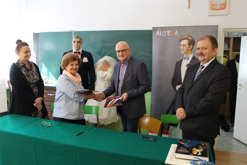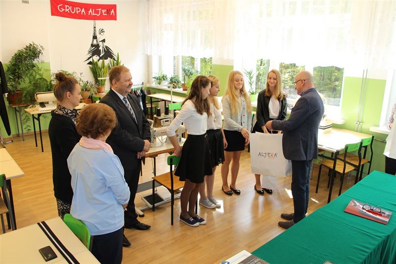 - Pomysł utworzenia technikum odzieżowego bardzo nam się spodobał. Jesteśmy zadowoleni ze współpracy, jaka łączy szkołę z Grupą Aljeka. I choć nie udało się otworzyć klasy w bieżącym roku szkolnym, najcenniejsze jest to, że ani szkoła, ani firma Aljeka nie zrezygnowały z tego pomysłu. Dzięki pani dyrektor Odolczyk udało się mimo wszystko zorganizować zajęcia w formie fakultatywnej i to jest bardzo ważne w perspektywie rozwoju tego kierunku. Firma wsparła tę ideę poprzez wyposażenie techniczne i stałe dostarczanie materiału do praktycznej nauki zawodu i to jest budujące. Wierzę, że w przyszłym roku technikum rozpocznie swoją działalność. Władze powiatu są zadowolone z waszych działań i współpracy, których efektem jest profesjonalne zaplecze do nauki projektowania i szycia odzieży. Doceniamy upór pani dyrektor w tym zakresie – mówił wicestarosta Tadeusz Głuchowski, podkreślając również ogromną wagę szkolnictwa zawodowego w Polsce. Powiedział, że w Teresinie planowane jest również otwarcie szkoły branżowej I stopnia na kierunku kierowca-mechanik – Obecnie prowadzimy rozmowy z panem Janem Buczkiem, prezesem Zrzeszenia Międzynarodowych Przewoźników Drogowych na temat współpracy – wyjaśnia wicestarosta.