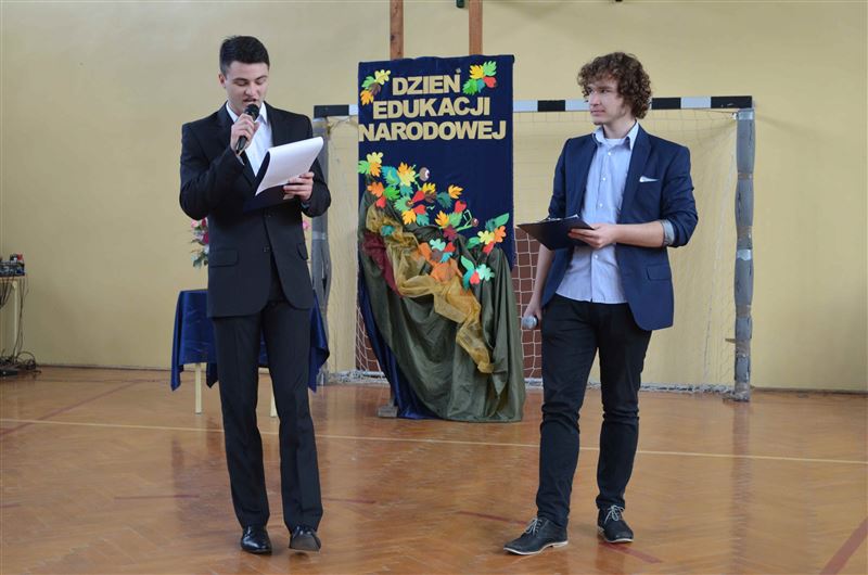 13 października świętowaliśmy w naszej szkole Dzień Edukacji Narodowej. Już od samego rana po korytarzach krążyli uczniowie, niosąc naręcza kwiatów dla nauczycieli, a przede wszystkim dla swoich wychowawców. Miło było patrzeć na uśmiechnięte twarze, miło było słyszeć piękne życzenia. Bo ten dzień to czas spotkań, rozmów, podziękowań, wzajemnej życzliwości. Nie mogło też zabraknąć części artystycznej przygotowanej przez utalentowanych kolegów z liceum pod opiekę pań profesor: Joanny Sitowskiej i Anny Grzywacz. W tym roku byliśmy uczestnikami dość nietypowego szkolenia dla nauczycieli. Forma spektaklu przypadła do gustu wszystkim uczniom i pracownikom szkoły, o czym świadczyły gromkie oklaski i zaangażowanie widzów w szkolenie. Wartą uwagi częścią występu był pokaz mody dla nauczycieli, w który młodzież włożyła ogrom pracy. Wysiłek bez dwóch zdań się opłacił, ponieważ przemyślane, ciekawe stroje potrafiły w pełni odzwierciedlić rolę oraz wagę danego przedmiotu szkolnego. Mogliśmy podziwiać ubrania zaprojektowane specjalnie dla matematyków, polonistów, biologów bądź informatyków. Wszystkie kreacje zdradzały niezwykłą kreatywność projektantów, a ponadto były wykonane z dużą starannością. Na scenie pojawił się nawet malutki piesek. Nieco przestraszony towarzyszył pięknej modelce.