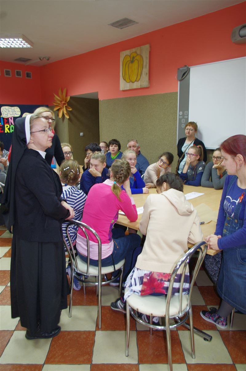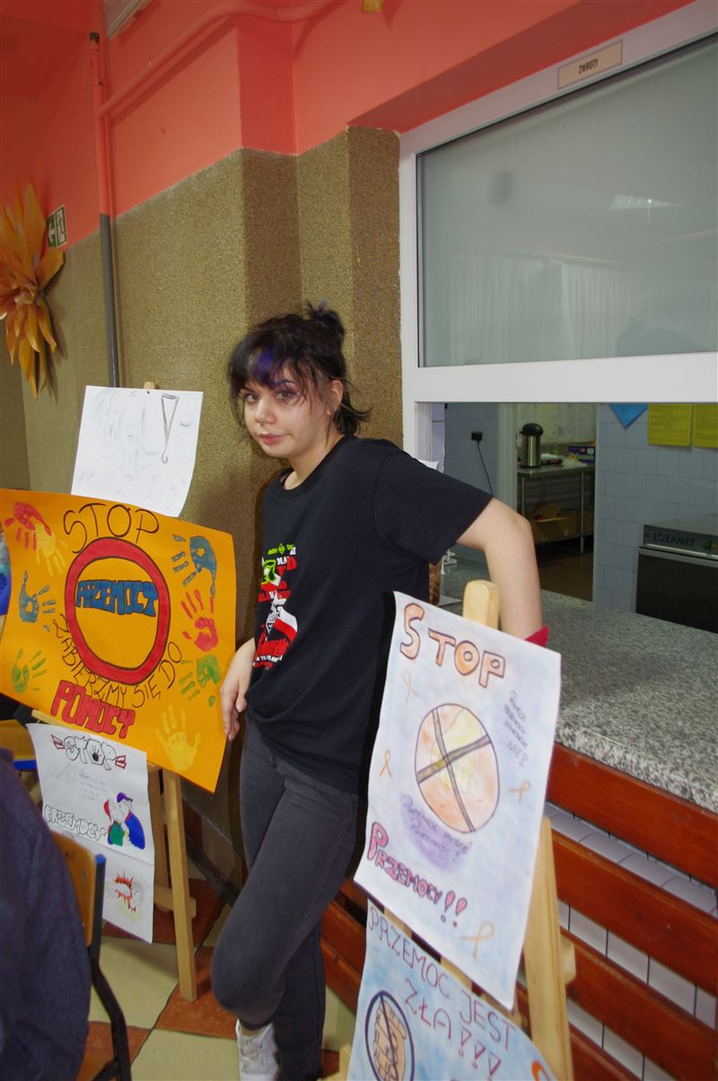 Na uwagę zasługuje fakt, że nasza placówka bierze również udział w światowej kampanii 19 dni przeciw przemocy dzieciom i młodzieży, dlatego też wszyscy uczestnicy ozdobili odzież pomarańczową wstążką symbolizującą nasz sprzeciw wobec zachowań przemocowych oraz pod kierunkiem p. Izabeli Kubiak wychowanki wykonały gazetkę ścienną. W ten sposób również propagujemy naszą postawę wobec zjawiska i zachęcamy inne placówki do podejmowania działań na rzecz walki z przemocą.