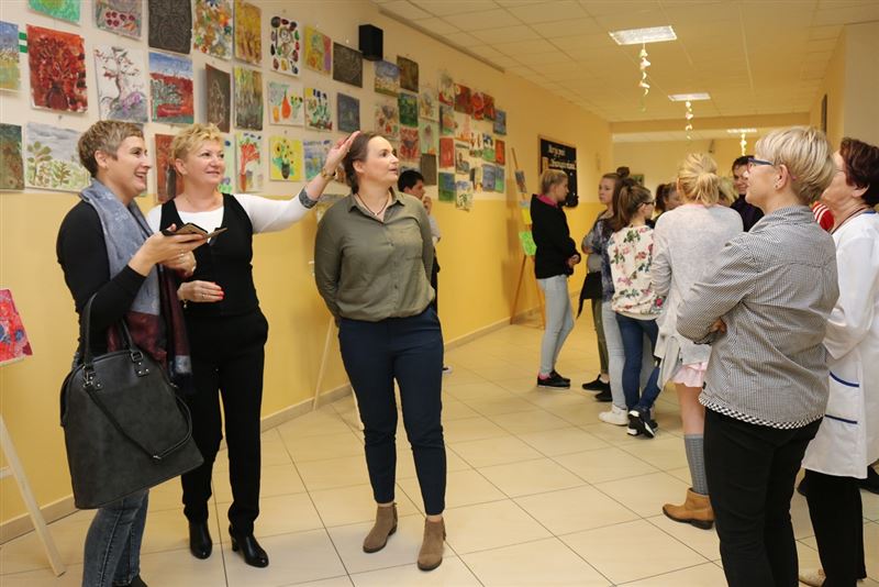 Wystawa poplenerowa, gdzie obok siebie wisiały dzieła prawdziwie artystyczne i naiwne, kolorowe obrazki dzieci, gdzie mogliśmy oglądać prace malarskie wykonane wspólnie przez rodziców i dzieci, w których ze zdumieniem odkrywaliśmy zupełnie nową jakość – ta wystawa, która ożywiła szkolny korytarz niezwykłą feerią barw – zachwycała i wzruszał oglądających. Wspólne i piękne dzieło tak wielu i tak różnych osób. To nie tylko efekt plenerów – to obraz tego wszystkiego, co się dzieje między nami w społeczności szkolnej. To właśnie tak bardzo wzrusza, zachwyca i budzi wdzięczność dla każdego uczestnika wspólnej pracy.
