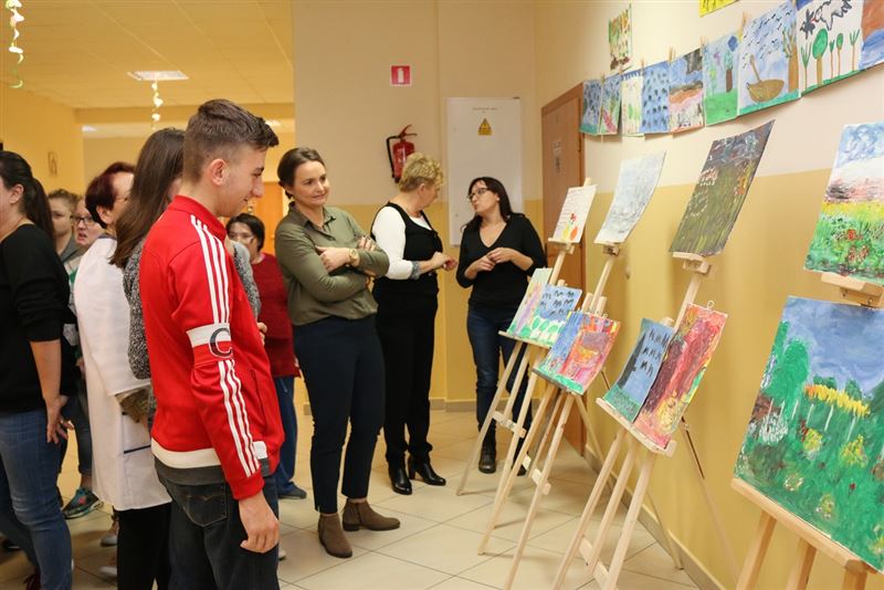 Wystawa poplenerowa w Erminowie, która zgromadziła społeczność szkolną – licznie przybyli uczestnicy plenerów, uczniowie, rodzice, nauczyciele – dała nam okazję do uroczystego otwarcia Altany. Przecięcia kolorowej wstęgi dokonali wspólnie: Urszula Opasiak – dyrektor Powiatowego Zespołu Edukacji, jak również dyrektor ZSS w Erminowie Renata Karaś oraz przedstawiciele rodziców i uczniów szkoły. Dyrektor Opasiak w imieniu zarówno swoim jak i starosty Jolanty Gonta wyraziła uznanie dla zaangażowania rodziców oraz dla efektów ich współpracy z dyrekcją i radą pedagogiczną szkoły.