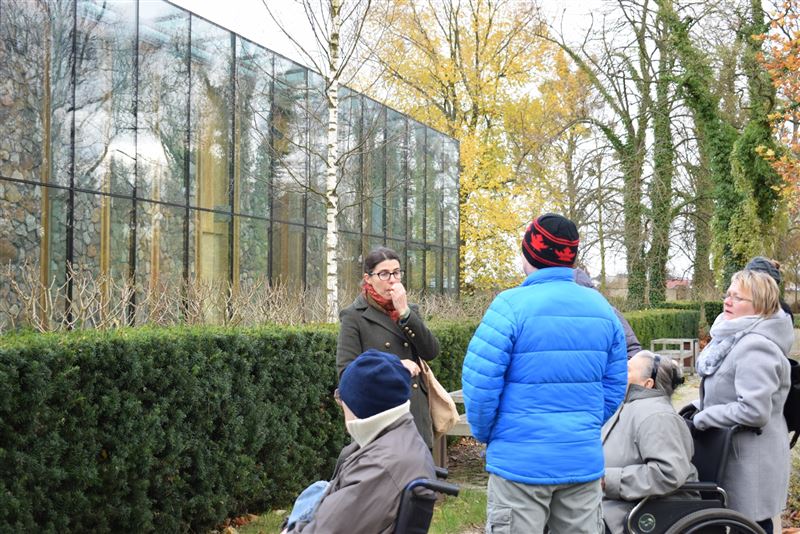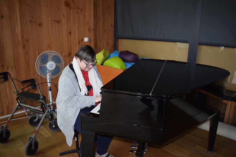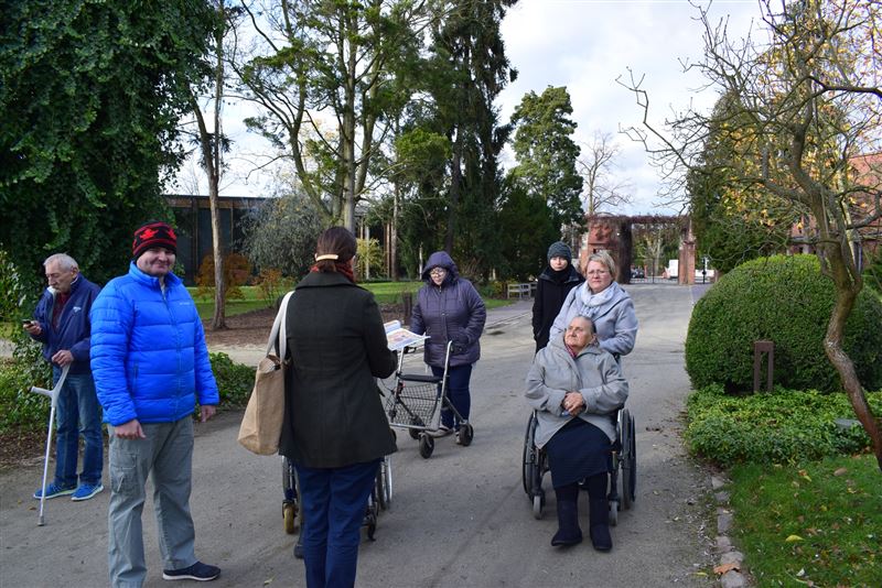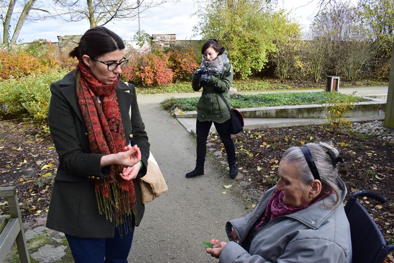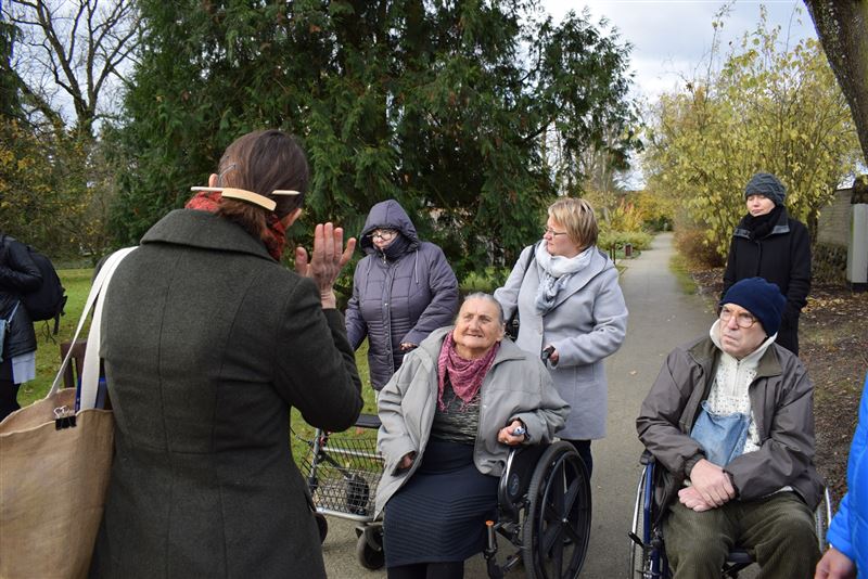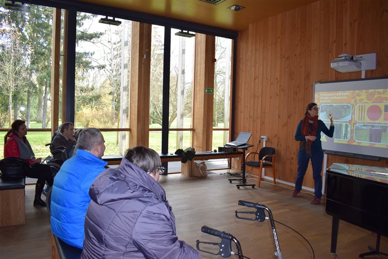 Podczas spaceru po parku nasi podopieczni podziwiali piękno przyrody poprzez wzrok i dotyk - kwiatów, krzewów, a także słuch nie tylko śpiewu ptaków, ale i utworów Fryderyka Chopina. Ważnym doświadczeniem dla p. Ewy Rybickiej, byłej organistki, była zbliżenia się do fortepianu, na którym obecnie grane są chopinowskie koncerty.