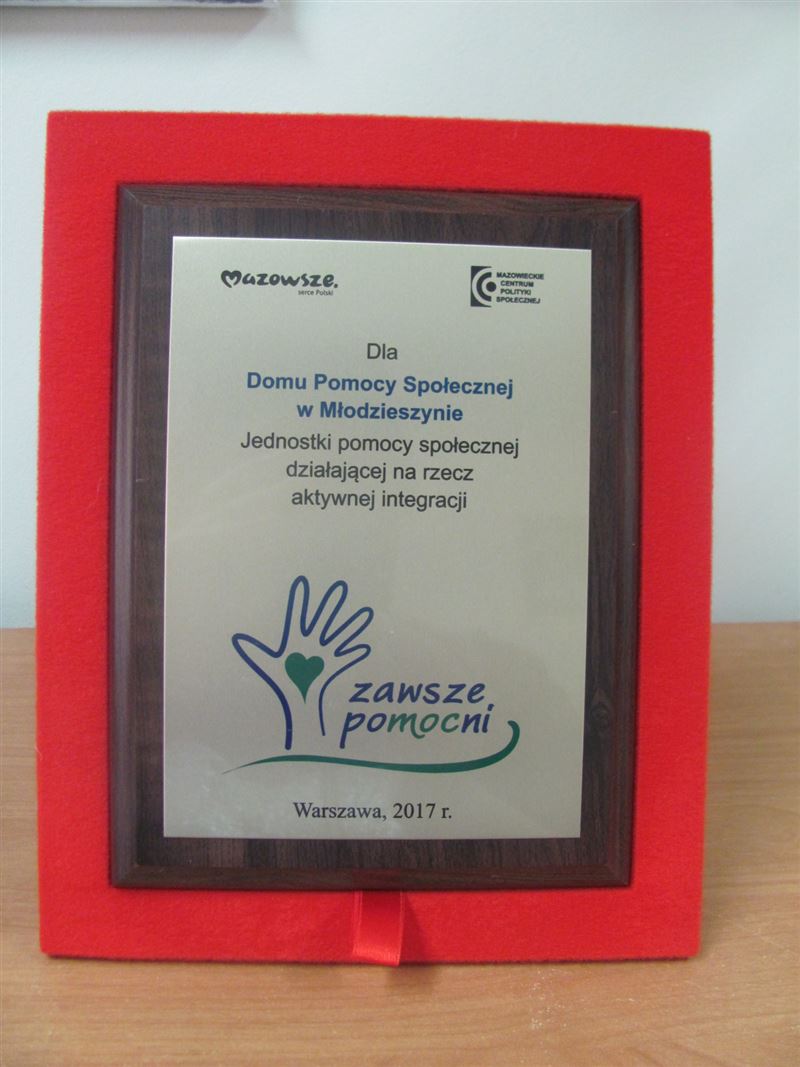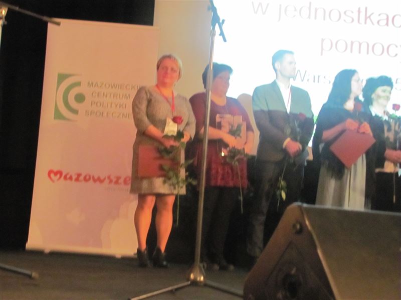 Dla Domu Pomocy Społecznej w Młodzieszynie było to potrójnie ważne wydarzenie. Po pierwsze dlatego, że dwie pracownice placówki – Pani Wioletta Ziernik – terapeuta zajęciowy oraz Pani Agnieszka Okraska – pracownik socjalny otrzymały „Wyróżnienie dla pracownika jednostki organizacyjnej pomocy społecznej wyróżniającego się szczególnym zaangażowaniem w działania na rzecz procesu planowania i realizacji usług społecznych na Mazowszu – Zawsze Pomocni”. Po drugie na ręce Zastępcy Dyrektora – Pani Iwony Przydatek zostało wręczone wyróżnienie dla „Domu Pomocy Społecznej jednostki pomocy społecznej działającej na rzecz aktywnej integracji”.