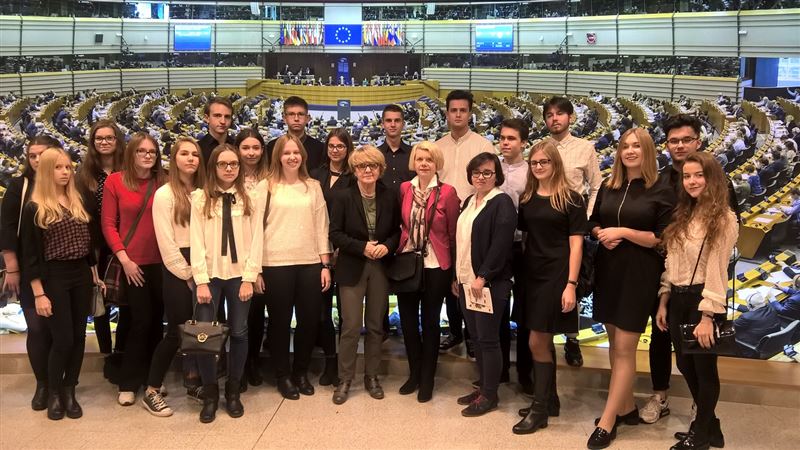 Wreszcie skończył się czas długiego oczekiwania. Poznaliśmy datę upragnionego wyjazdu studyjnego do Brukseli, który będzie trwał od 5 do 9 listopada 2017 roku. Wyjazd ten jest nagrodą za zwycięstwo w ogólnopolskim konkursie ,,Europejski Traktat Młodych - ,,Jak młodzież widzi przyszłość Unii Europejskiej?’’, organizowanym przez biuro poselskie p. prof. Danuty Hübner. Zadaniem uczestników było stworzenie traktatu o dalszych losach UE w aspekcie politycznym, gospodarczym i kulturalnym. Autorami zwycięskiej pracy są: Marta Śmigiera, Przemysław Pawlak, Kacper Kisiel, Aleksander Szostak, Bartłomiej Kalbarczyk i Jakub Januszewski. W wyjeździe wzięli również udział stypendyści z naszego liceum oraz z gimnazjum pod opieką p. prof. Jolanty Wojciechowskiej oraz p. prof. Katarzyny Bombrych.Po blisko dwudziestogodzinnej podróży autokarem dotarliśmy do stolicy Belgii, która przywitała nas słońcem i cudownymi widokami. Pierwszym punktem na naszej trasie poznawania Brukseli był Parlament Europejski. Budynki instytucji europejskich zrobiły na nas wszystkich ogromne wrażenie. Każdy z nas chciał zrobić sobie pamiątkowe zdjęcie na tle flag państw należących do Unii Europejskiej. Jako nieliczni mieliśmy okazję przyjrzeć się pracy Parlamentu Europejskiego z bliska. Zostaliśmy zaproszeni do sali, na środku której stała mównica oraz wyświetlano prezentację multimedialną dotyczącą UE. W trakcie ciekawego wykładu dowiedzieliśmy się bardzo wiele o podstawowych zasadach istnienia Unii Europejskiej, jej historii i instytucjach. Następnie mieliśmy przyjemność rozmawiać z p. prof. Danutą Hübner, która w bardzo przystępny i interesujący sposób przedstawiła nam swoją pracę oraz opowiedziała o zadaniach na przyszłość. Pani Profesor bardzo chętnie odpowiadała na nasze pytania dotyczące np. stażu w instytucji unijnej oraz zachęcała nas do wytężonej pracy i nauki. Ze spotkania wychodziliśmy bogatsi o nowe doświadczenie oraz z pamiątkami naszego pobytu w Parlamencie. Później przeszliśmy do sali posiedzeń Parlamentu, gdzie mogliśmy zobaczyć miejsce, w którym podejmuje się najważniejsze decyzje. Aby poszerzyć naszą wiedzę, udaliśmy się do multimedialnego Muzeum Unii Europejskiej, czyli Parlamentarium. Na miejscu otrzymaliśmy specjalne urządzenia umożliwiające korzystanie z multimedialnej części wystawy z komentarzem w języku polskim. Muzeum dostarczyło nam wiele nowych wiadomości i pokazało znane zagadnienia w nieco innym świetle. Wieczorem, po kolacji wyszliśmy na krótki spacer. Cudownie było podziwiać życie miasta nocą, poznawać jego tajemnice. Następny dzień przyniósł nam niezapomniane wrażenia. Rano obejrzeliśmy zabytkową Narodową Bazylikę Najświętszego Serca, zbudowaną w stylu art deco, największą tego typu budowlę na świecie. Następnie przejechaliśmy pod Atomium, czyli ogromny model atomu stworzony na wystawę światową. Każdy z nas wykonał obowiązkowe w tym miejscu zdjęcie z jedną z kul atomu na dłoni. Następnie wyruszyliśmy do Brugii, malowniczo położonego średniowiecznego miasta. Tam, spacerując po urokliwych uliczkach, poznaliśmy jego historię i dawne przeznaczenie. Obejrzeliśmy zabytkowe zabudowania oraz bazylikę Świętej Krwi, gdzie przechowywana jest Krew Pańska przywieziona w XII w. z Ziemi Świętej. Gdy dotarliśmy na rynek, poczuliśmy apetyczny zapach. To słynne belgijskie frytki serwowane tradycyjnie – z majonezem. Wszyscy natychmiast ustawiliśmy się w kolejkę po ten przysmak. Nasyceni i bogatsi o nowe wrażenia kulinarne wyruszyliśmy na podbój sklepików z pamiątkami. Czarował nas wszechobecny zapach przepysznej czekolady, a wystawy manufaktur kusiły wyrobami w różnych smakach i kształtach. Udało nam się również poczuć ducha świąt, dzięki sklepom pachnącym cynamonem, piernikami i pomarańczami, w których można kupić ozdoby świąteczne. Niestety czas naszego pobytu w malowniczej Brugii się skończył. Jednak to nie koniec wrażeń. Po powrocie do Brukseli mieliśmy okazję zobaczyć to piękne miasto nocą. Oświetlone budynki i gwiazdy tworzyły nadzwyczajną atmosferę. Obejrzeliśmy pomnik siusiającej dziewczynki, znajdujący się w centrum miasta. Później udaliśmy się do restauracji znajdującej się przy Starym Rynku, gdzie mogliśmy spróbować tradycyjnego gulaszu flamandzkiego.Kolejny dzień był czasem pożegnania z wielokulturowym miastem. Rano spacerowaliśmy po starym mieście, porównując jego wczorajszy, nocny obraz z dzisiejszym, opromienionym słońcem. Oczywiście znaleźliśmy się pod pomnikiem Manneken pis (siusiającego chłopca), który jest symbolem Brukseli. Po chwili weszliśmy do jednego ze sklepików z czekoladą, w którym odbyła się degustacja czekoladowych pyszności. Wszyscy byliśmy nimi zachwyceni i poczyniliśmy ogromne zakupy. W trakcie czasu wolnego, zachęceni przez obłędny zapach daliśmy się skusić na wyśmienite gofry, podawane w przeróżny sposób. Nasyceni błądziliśmy otoczeni zapachem czekolady po wąskich uliczkach belgijskiej stolicy.Po południu spakowaliśmy wszystkie nasze pamiątki oraz czekoladowe dzieła do autobusu i wyruszyliśmy w drogę powrotną do Polski. Podróż była długa, lecz minęła na wspominaniu kolorowych ulic i zapamiętywaniu wszystkich szczegółów naszej wycieczki. Odwiedziliśmy Parlament Europejski i poznaliśmy jego funkcjonowanie, obejrzeliśmy przepiękną Brugię z jej urokliwymi uliczkami oraz zobaczyliśmy Brukselę – wielokulturowe miasto. Ten wyjazd na długo zostanie w naszej pamięci ze względu na ogromną magię miejsc, które widzieliśmy. Dla mnie Bruksela już na zawsze będzie pachniała czekoladą.