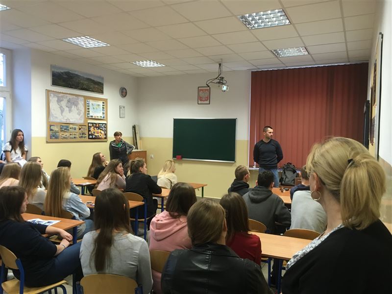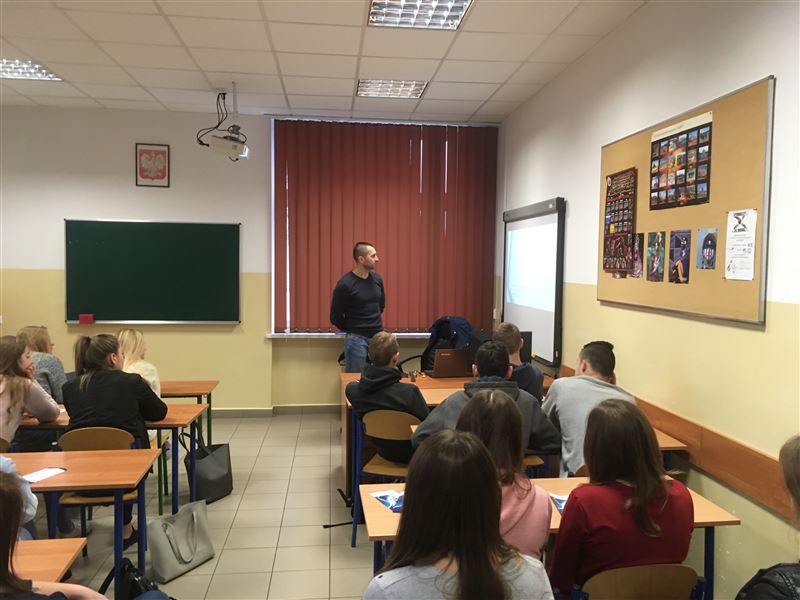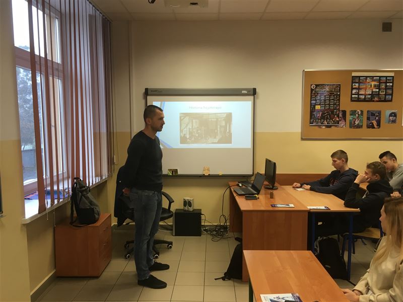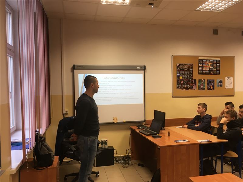 Jak zawsze były to bardzo ciekawe zajęcia, na których zaprezentowane zostały metody stosowane w reaktywacji organizmu na bodźce. Wykład został zwieńczony pokazem nastawiania kręgosłupa. To był punkt kulminacyjny spotkania, dla większości zupełnie nowe doświadczenie. Uczniowie mieli bezpośredni kontakt z pracą rehabilitanta, który opowiadał o zabiegach stosowanych w nowoczesnej rehabilitacji, o blaskach i cieniach tego zawodu. Takie spotkanie to doskonałe wsparcie dla nauczycieli prowadzących zajęcia lekcyjne związane z tym profilem kształcenia, a rehabilitant kadry narodowej zainteresowanie tym zawodem utrwala. Niedługo kolejne spotkanie.