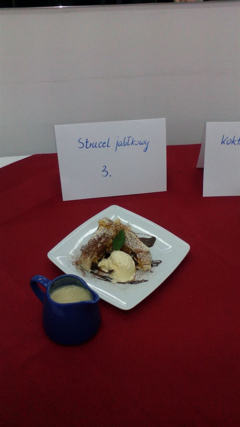 I miejsce zdobyli uczniowie III klasy technikum żywienia i usług gastronomicznych - Eryk Jarota i Mateusz Traczyk. Drużyna przygotowała strucel jabłkowy, którego inspiracją był „Harry Potter” J. Rowling.