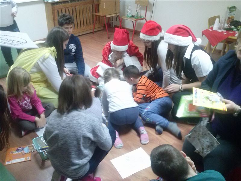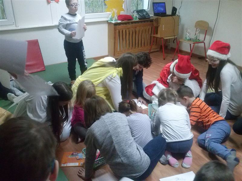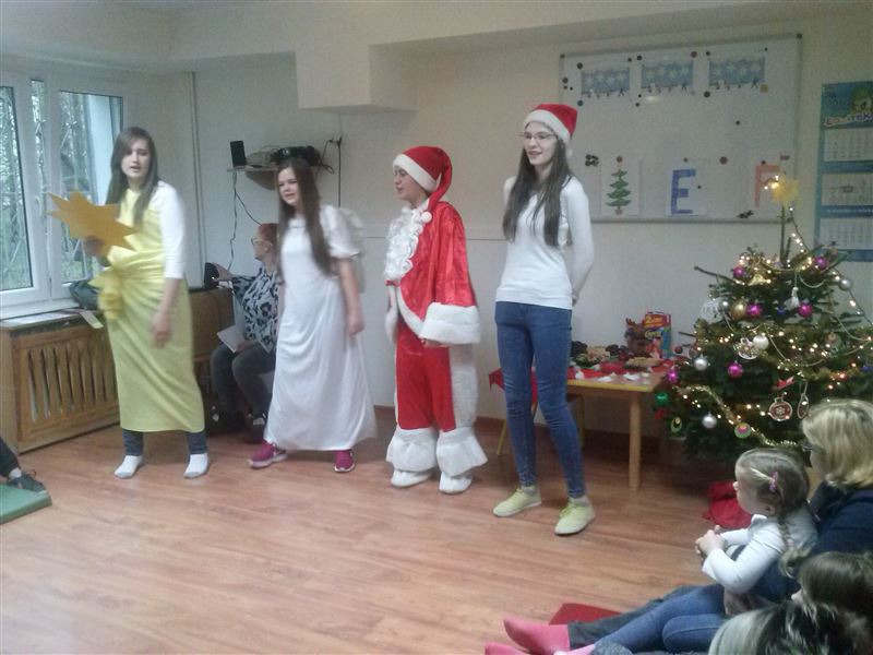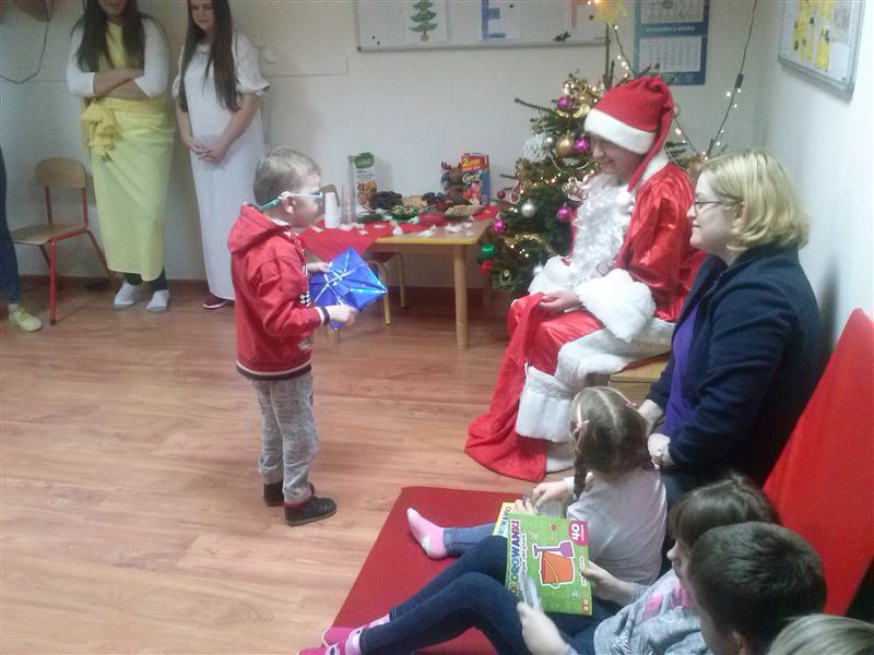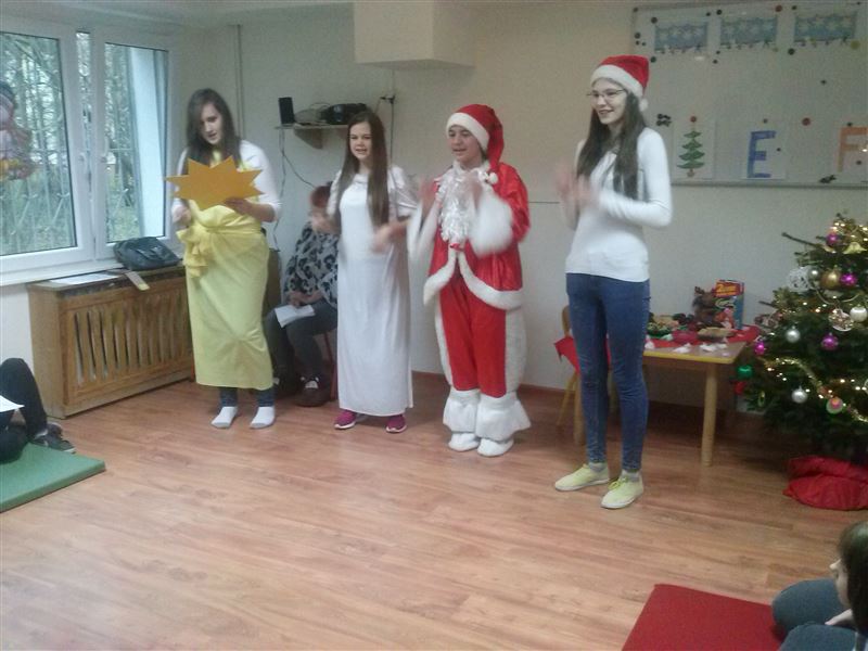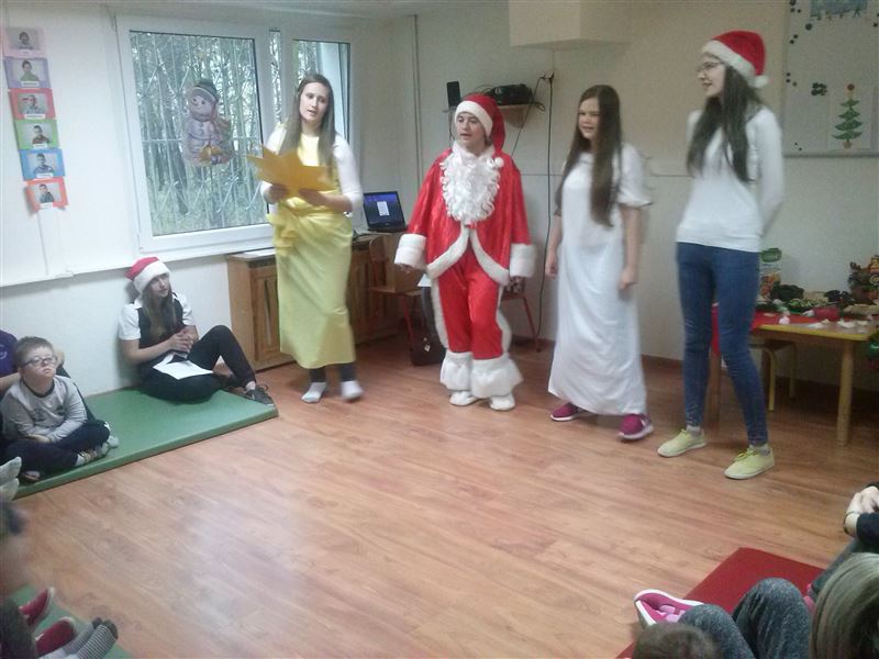 Dzieci w czasie inscenizacji śpiewały wspólnie z „aktorami”. Brały też udział w konkursie na najpiękniejszą świąteczną kolorowankę. Najważniejszym punktem programu była wizyta Świętego Mikołaja. Najmłodsi z bijącymi sercami oczekiwali na przybycie gościa. Każde dziecko podchodziło do Mikołaja, by porozmawiać i otrzymać paczkę. Spotkanie było ogromną frajdą dla dzieci i wolontariuszy.