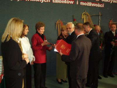 14 października, w sali Gimnazjum nr 2 z rąk starosty Józefa Gołębiowskiego i przewodniczącego Rady Powiatu Andrzeja Grabarka otrzymali :