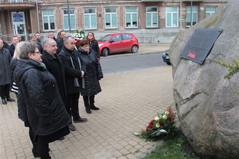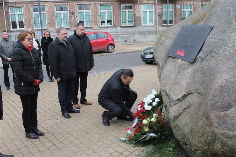 Przypomnijmy, że pomnik „Solidarności” na skwerze przed Urzędem Miejskim odsłonięto 13 grudnia 2005 roku. Na 24 tonowym kamieniu podarowanym mieszkańcom miasta przez firmę Energop umieszczono tablicę upamiętniającą 25 lecie działalności NSZZ „Solidarność”. Kilka miesięcy wcześniej, we wrześniu 2005 roku Rada Miejska nadała skwerowi imię „Niezależnego Samorządnego Związku Zawodowego SOLIDARNOŚĆ”.