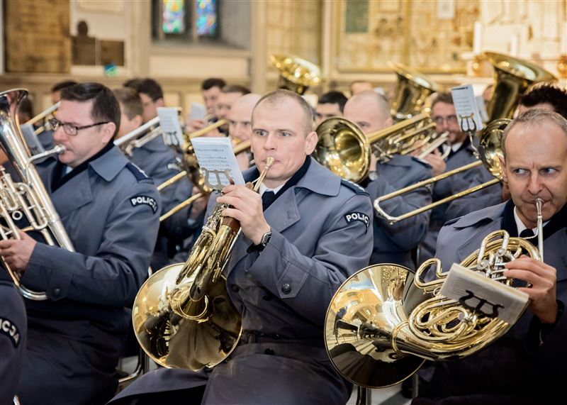 Proboszcz, o. Andrzej Sąsiadek, dzięki któremu można było zorganizować charytatywny koncert, przybliżył wiernym czym jest Niebieska Gwiazdka, której pomysłodawczynią jest dzielnicowa Posterunku Policji w Teresinie - sierż. Anna Opęchowska-Ciak. Po nabożeństwie wierni mieli okazję uczestniczyć w koncercie charytatywnym. Wystąpiła Orkiestra Reprezentacyjna Policji pod batutą mł. insp. Janusza Trzepizura. W repertuarze znalazły się takie utwory jak „Against All Odds” Phila Collinsa czy „O niebo lepiej” Mietka Szcześniaka.