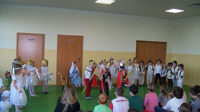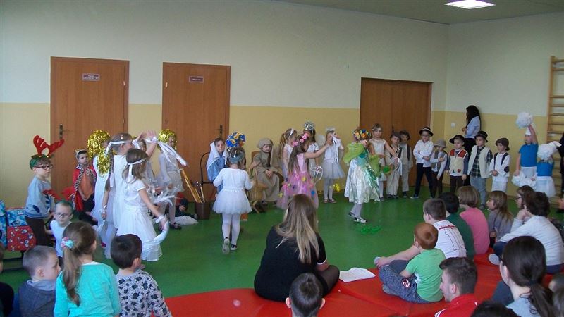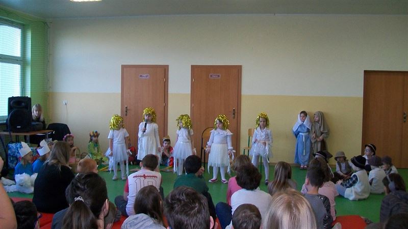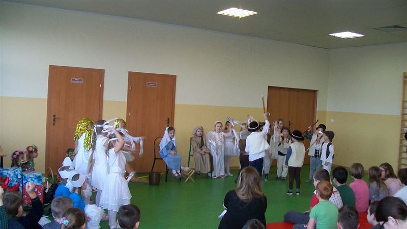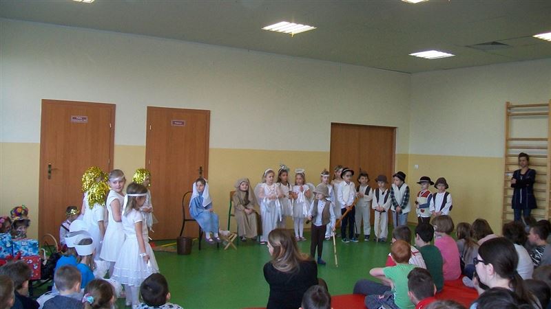 Jasełka przygotowane przez dzieci przypomniały nam wszystkim o tym, że przecież nowo narodzony Jezus pojawił się wśród nas także jako dziecko, Bóg Dziecina. Dlatego żłobek w dziecięcym przedstawieniu odwiedzali nie tylko tradycyjnie Trzej Królowie, anioły i pasterze, ale również Smerfy, czy też reniferki z saniami pełnymi prezentów.