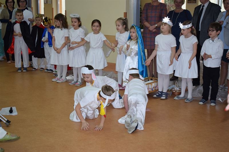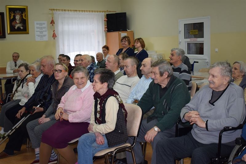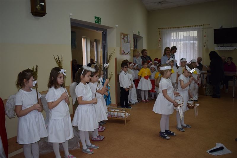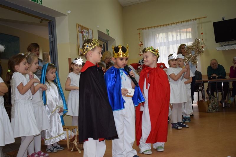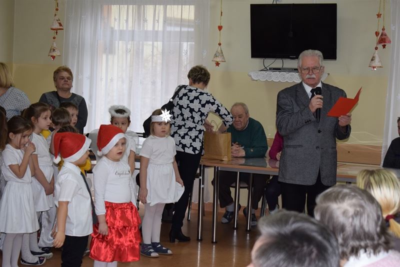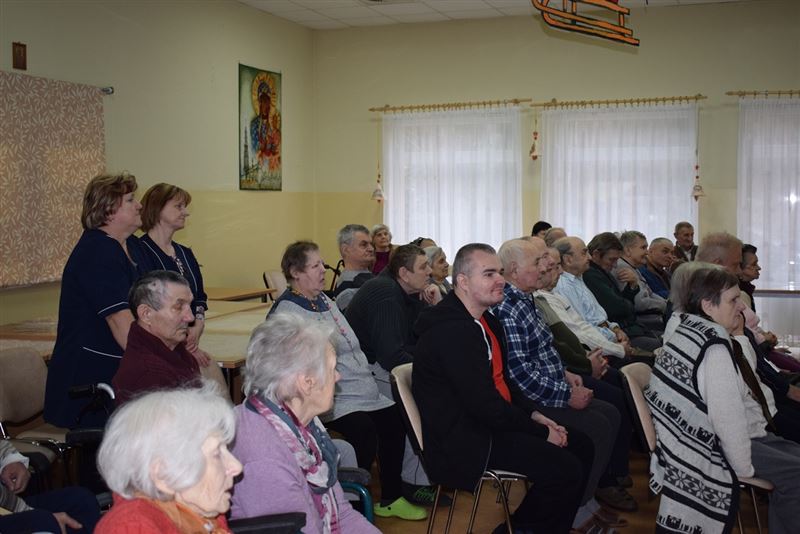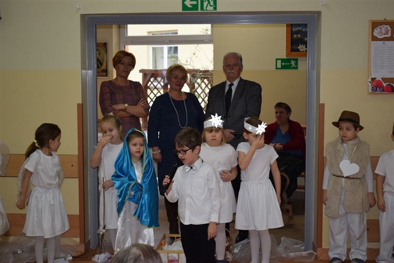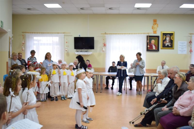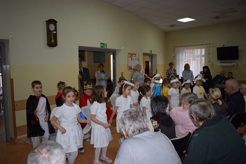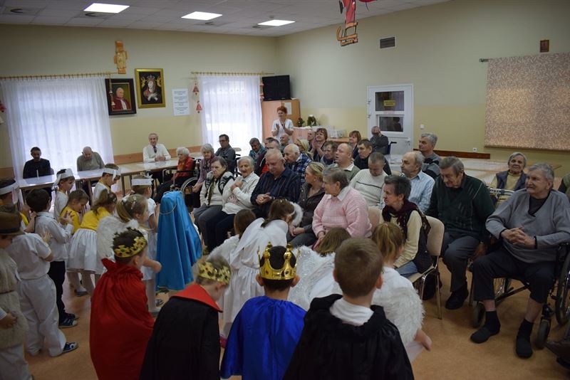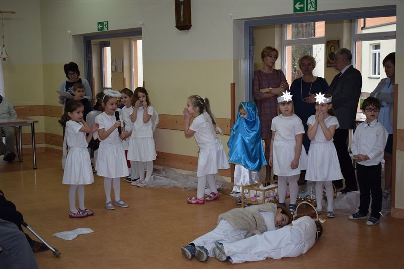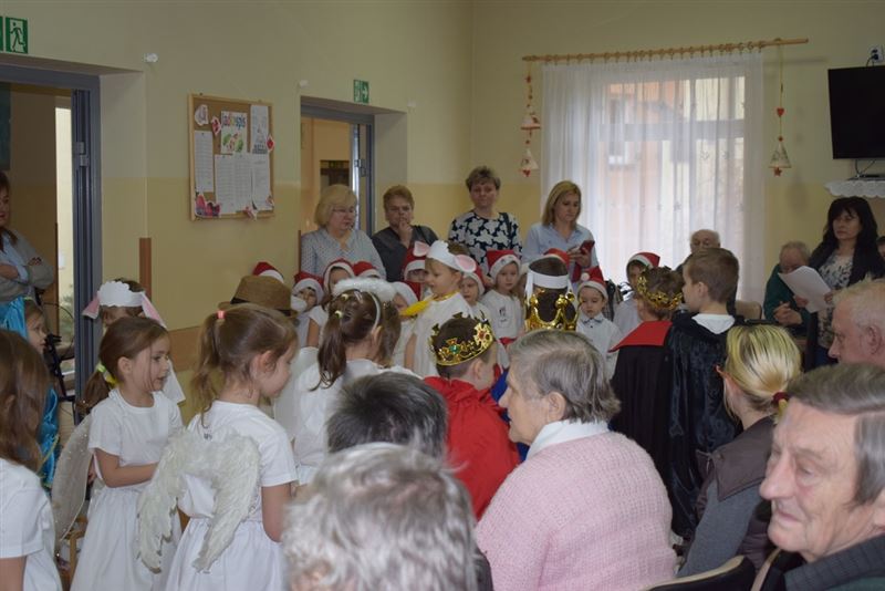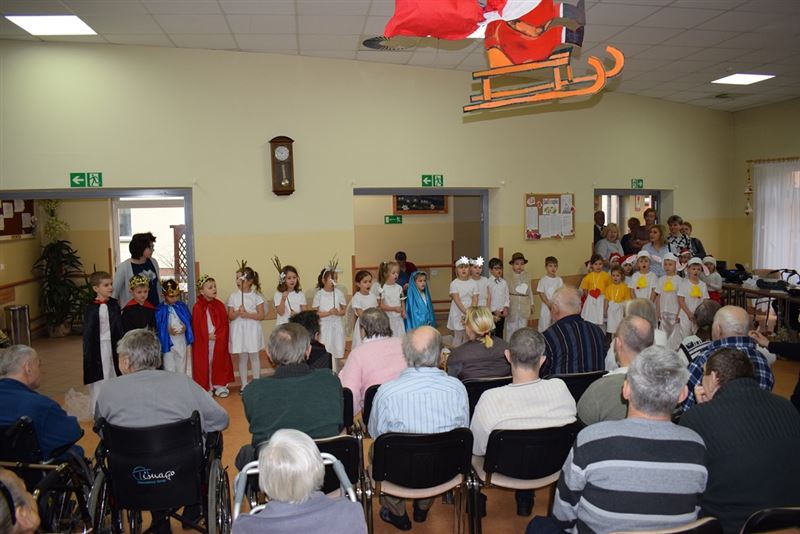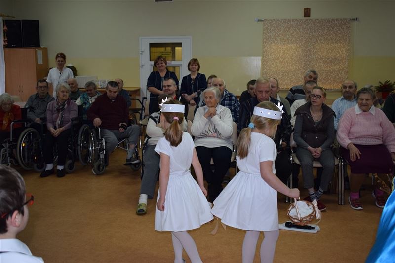W Domu Pomocy Społecznej we wtorek 9 stycznia br. gościliśmy młodych artystów z Miejskiego Przedszkola Nr 7 z Sochaczewa wraz z opiekunami. Dzieci zaprezentowały Jasełka Bożonarodzeniowe bogate w treści religijne i polskie piosenki, wzbogacone choreografią idealnie wpasowaną w klimat przedstawienia. Występ najmłodszych dostarczył naszym mieszkańcom wiele pozytywnych odczuc, wrażeń czego dowodem były głosy z widowni jak i uśmiechy czy łzy szczęścia. Wspólne zaśpiewanie kolędy na koniec spotkania było ukoronowaniem tak miłych wspólnie spędzonych chwil. Życzenia i laurki przekazane od Dyrektora, Rady Pedagogicznej i dzieci na długo pozostaną w naszej pamięci jak i sercach: