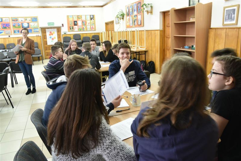 Warsztaty oparte o projekt „Deutsch hat Klasse”, przygotowane przez Monikę Łagowską z Instytutu Goethego w Warszawie, odbyły się w naszej szkole (ZSO) 10 stycznia tego roku. Uczniowie klasy III B gimnazjum, przy wsparciu Adrianny Marzec i Wiolety Żak-Błasiak, zdecydowali się wziąć udział w bardzo nietypowym projekcie – konkursie jednocześnie - „Deutsch hat Klasse”. Celem konkursu jest dokonanie zmian w aranżacji sali lekcyjnej języka niemieckiego. W ubiegłym tygodniu szkołę odwiedziła Monika Łagowska, która nie tylko sprawdziła, na jakim etapie pracy są uczniowie, ale i przeprowadziła dla nich warsztaty, które pomogą w dalszym planowaniu i modyfikowaniu klasy. Uczniowie mieli okazję przedyskutować projekt oraz zagrać w grę symulacyjną, pozwalającą na uczeniu się podejmowania takich decyzji, by wszyscy byli usatysfakcjonowani.