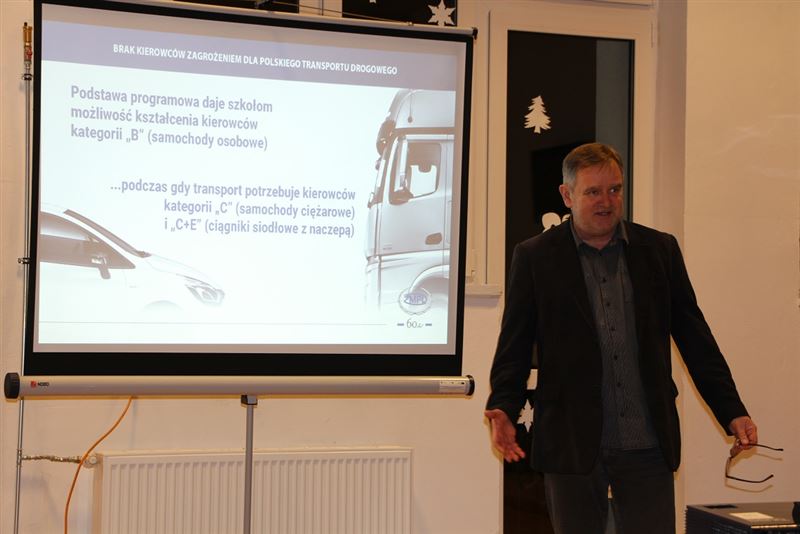 Trzecia odsłona współpracy pomiędzy zainteresowanymi uruchomieniem kształcenia przyszłych kierowców przyjęła charakter konferencji i odbyła się ponownie w Teresinie. Co ważne, poza władzami powiatu i ZMPD przybyli na nią przedsiębiorcy transportowi zainteresowani współpracą ze szkołą. Przewoźnicy przyznali, iż w kraju panuje duży niedobór kierowców międzynarodowych posiadających odpowiednie kwalifikacje zawodowe poparte wykształceniem w zawodzie. – Deficyt jest ogromny i będzie się ciągnął jeszcze przez długie lata. Dane o stałym i szybkim rozwoju sfery transportowej dają gwarancję, że planowany kierunek jest potrzebny, rynek wciąż poszukuje fachowców. Jesteśmy otwarci na współpracę, by szkoła w Teresinie stała się bazą dla kształcenia naszych kadr – mówili zgodnie przedsiębiorcy, którzy już teraz oferują szkole m.in. wsparcie w zakresie szkolenia nauczycieli, udział w akcjach promujących nowy kierunek nauczania czy specjalne pokazy dla kandydatów na uczniów. Podkreślano przy tym ogromną potrzebę kształcenia w zawodzie kierowca mechanik, który gwarantuje ciekawą i dobrze płatną pracę. Zawód daje możliwość rozwoju i może otworzyć drogę w przyszłości do założenia własnej działalności gospodarczej w branży transportowej. - Bardzo cieszę się z tego spotkania. Pomysł narodził się jeszcze wiosną ubiegłego roku. To budujące, że jesteście państwo zgodni, co do szybkiej realizacji tego edukacyjnego przedsięwzięcia w Teresinie. To ważne, że szkoła może liczyć na waszą pomoc – zwracał się do przedsiębiorców i przedstawicieli ZMPD Tadeusz Głuchowski, wicestarosta. – Zarząd Powiatu wspólnie z dyrektorami naszych szkół stara się dobierać kierunki kształcenia do potrzeb rynku pracy. Tak jest i tym razem, bo jak widzimy skala potrzeb w zawodzie kierowca mechanik jest olbrzymia, co jeszcze bardziej utwierdza nas w przekonaniu o słuszności wyboru tego kierunku – dodał wicestarosta.