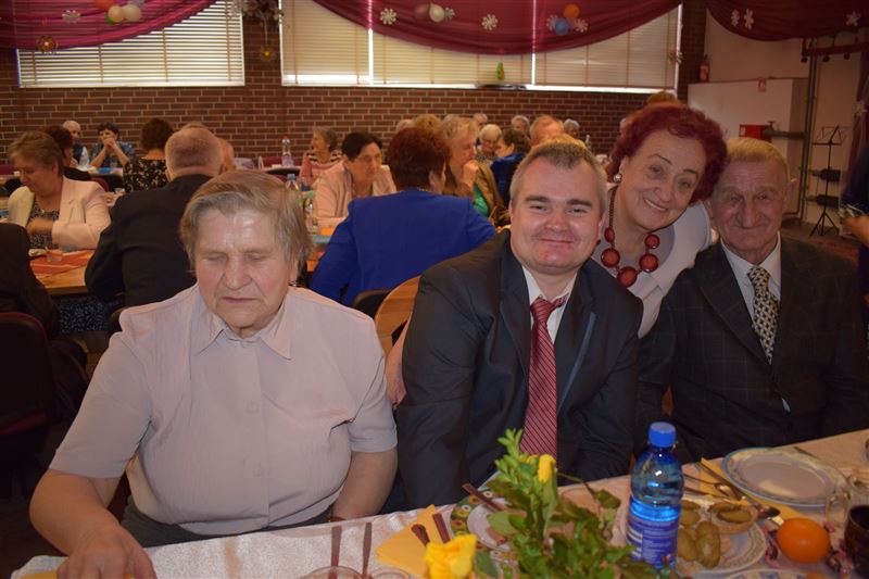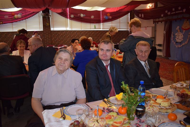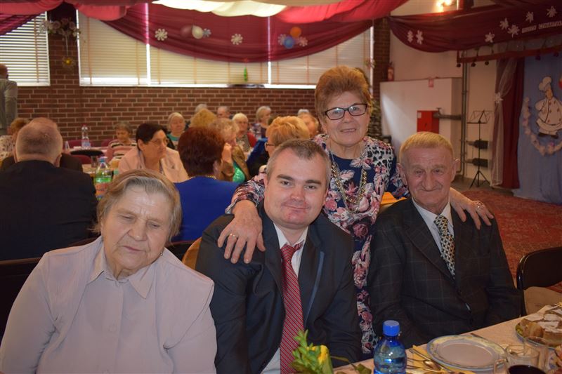 Seniorzy wraz z Naszymi Mieszkańcami przy akordeonowym akompaniamencie razem biesiadowali i śpiewali znane piosenki takie jak: „Jarzębina czerwona”, „Siadła pszczółka” i wiele innych.