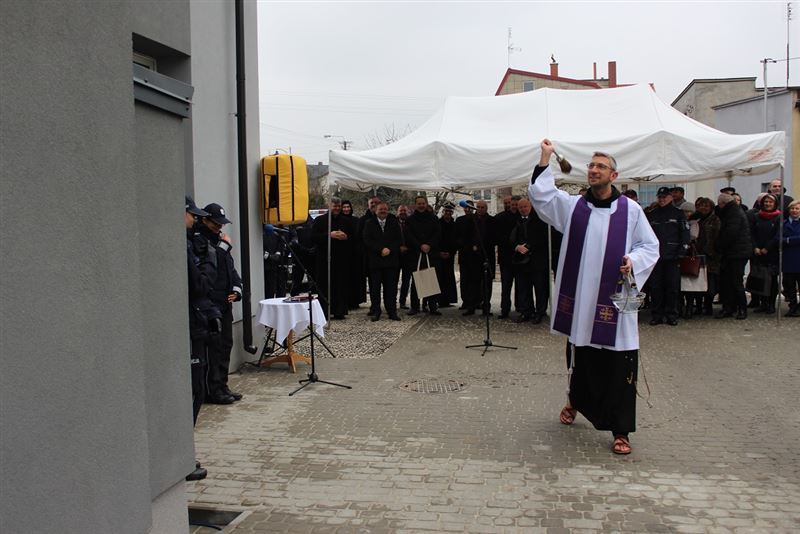 Po części oficjalnej spotkania, zebrani zwiedzili wnętrze zmodernizowanego posterunku, który wcześniej poświęcił o. Andrzej Sąsiadek, proboszcz parafii w Niepokalanowie. Wszyscy byli pod wrażeniem efektu prac, które zakończyły się przed kilkoma tygodniami. Ich zakres obejmował m.in.: roboty rozbiórkowe i demontażowe elementów obiektu, przebudowę pomieszczeń z pracami wykończeniowymi, wymianę stolarki drzwiowej i okiennej, wymianę instalacji elektrycznej i sanitarnej, ocieplenie budynku z zewnątrz, wykonanie docieplenia stropodachu z wykonaniem pokrycia dachowego przy zastosowaniu papy termozgrzewalnej. Powierzchnia użytkowa dwukondygnacyjnego budynku wynosi teraz 251,28 m2 a kubatura 1065 m3.