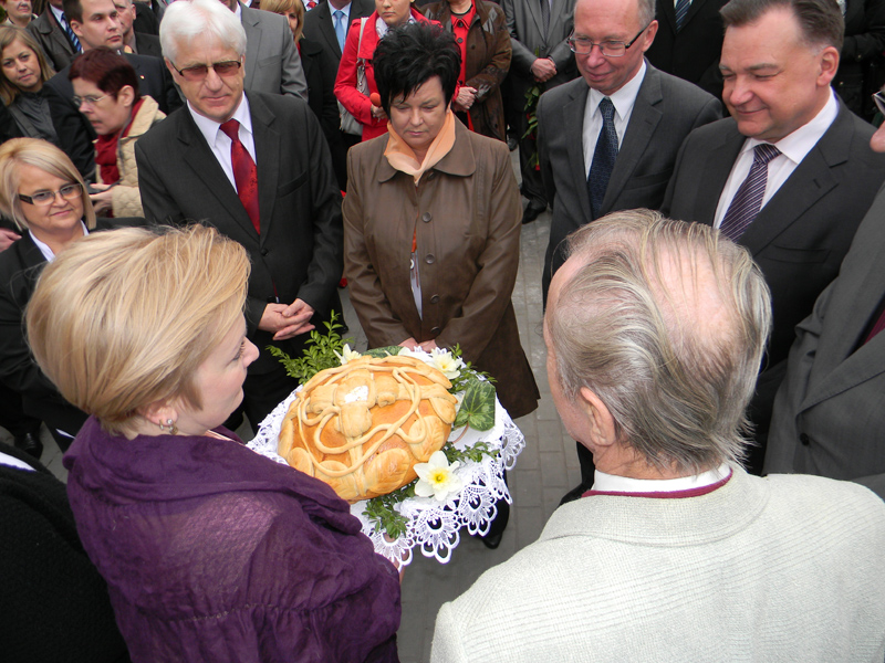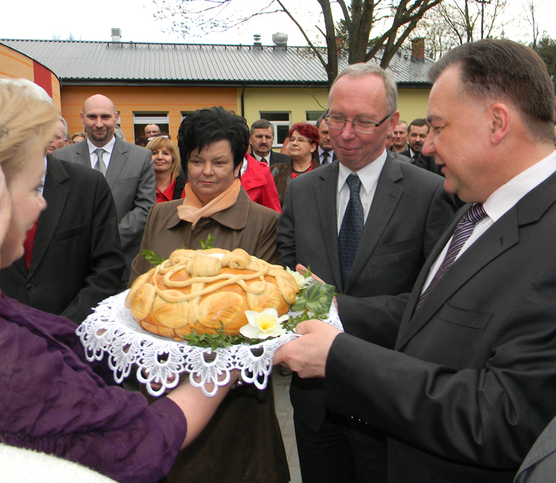 W naszej kulturze miłych i wyczekiwanych gości wita się staropolskim zwyczajem chlebem i solą, co uczyniła zgodnie z tradycją dyrekcja Domu Pomocy Społecznej wraz z jego mieszkańcami: Marianną Modzelewską i Adamem Pakułą. W ten sposób powitano: Marszałka Województwa Mazowieckiego Adama Struzika, Jacka Kozłowskiego Wojewodę Mazowieckiego, Przewodniczącą Rady Powiatu Halinę Pędziejewską, Starostę Sochaczewskiego Tadeusza Korysia, Wicestarostę Janusza Ciurę a także Joannę Szymańską Wójta Gminy Młodzieszyn.