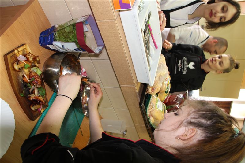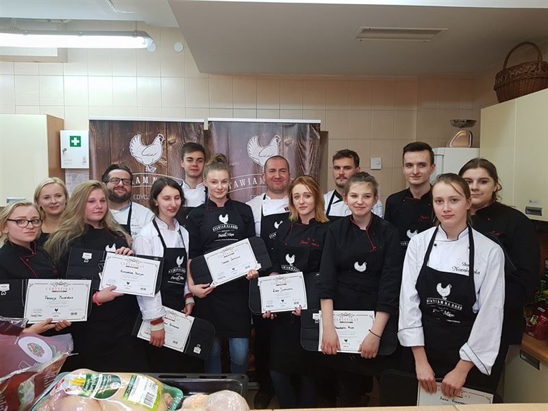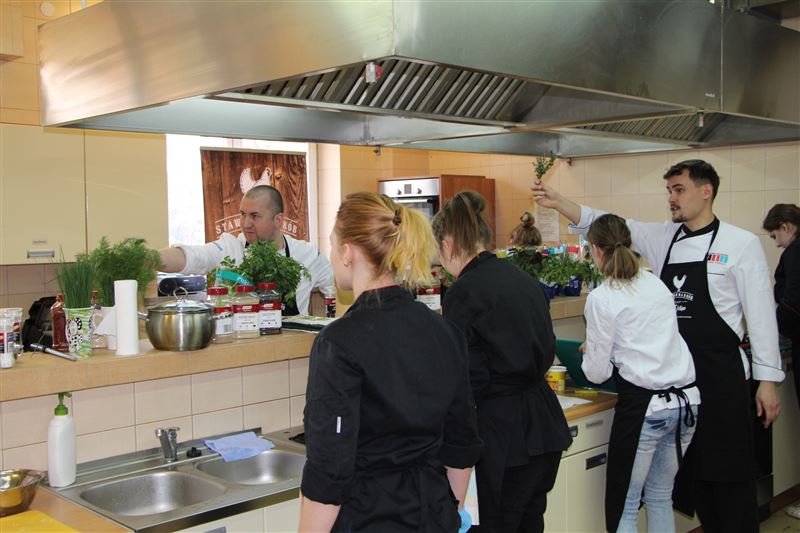 „Stawiam na drób” to wielkie gotowanie w „Ogrodniku". Związek Polskie Mięso organizuje szkolenia kulinarne dla uczniów szkół gastronomicznych pod hasłem STAWIAM na DRÓB! W środę, 21 lutego w Zespole Szkół RCKU w Sochaczewie, doświadczony mistrz kuchni Marcin Budynek, Judyta Szymkowiak, dietetyk, koordynator programu oraz trener z Akademii Kulinarnej Marcina Budynka - Bartosz Łukaszewicz przeprowadzili instruktaż z zakresu obróbki technologicznej mięsa drobiowego w formie prelekcji merytorycznej oraz praktycznej. Uczniowie „Ogrodnika" poznali nowoczesne metody obróbki drobiu, marynowane drobiu, kompozycje smakowe i aranżacji potraw. Celem zrealizowanego przedsięwzięcia było wyedukowanie uczniów z zakresu jakości mięsa drobiowego a także zaprezentowanie wariacji kulinarnych z polskim mięsem drobiowym w roli głównej. Dzięki Związkowi Polskie Mięso - dyrektor biura Katarzynie Oponowicz i organizatorce Anecie Bożewskiej, nauczycielce gastronomii w ZS RCKU młodzież z klasy Technikum Żywienia doświadczyła namiastki pracy w gastronomii a pod okiem szefa kuchni Marcina Budynka powstały prawdziwe arcydzieła kulinarne.