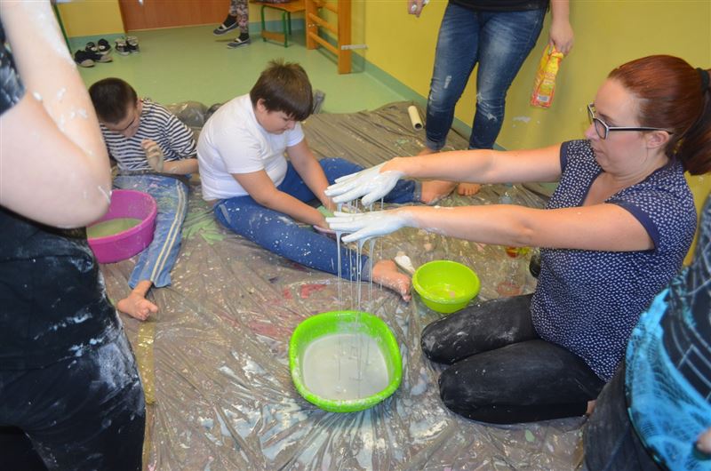Celem zajęć jest rozwijanie kompetencji interpersonalnych poprzez odpowiednie przygotowanie przestrzeni oraz wyzwolenie procesu twórczego u dziecka. Wykorzystywane są materiały sensoryczne wyłącznie z bezpiecznych produktów spożywczych. Zajęcia Senspolastyka® wpływają na rozwój wszystkich zmysłów: węchu, smaku, dotyku, wzroku, słuchu, wspierają kreatywność oraz twórcze myślenie. Udział w zajęciach sprawił uczniom wiele radości.