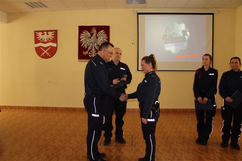 Podczas odprawy uroczyście wręczono nagrody dla funkcjonariuszy, którzy zwyciężyli w konkursie na „Najpopularniejszego dzielnicowego 2017 r.”. Otrzymali je: za zajęcie 1 miejsca – asp. sztab. Tomasz Kubiak, za zajęcie 2 miejsca – sierż. Anna Opęchowska-Ciak oraz za zajęcie 3 miejsca – sierż. sztab. Daria Stan. Wręczono także list gratulacyjny od Komendanta Wojewódzkiego Policji z/s w Radomiu za pracę i zaangażowanie, który otrzymała dzielnicowa z Teresina sierż. Anna Lis.