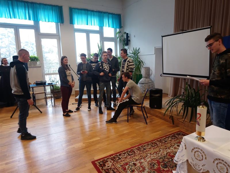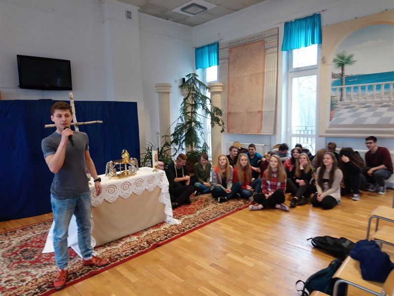 Większość naszych spotkań odbyła się w szkole – konferencje głoszone przez Ojca Huberta, świadectwo Andrzeja Sowa oraz wizyta naszego Specjalnego Gościa - Pana Jezusa podczas Adoracji Najświętszego Sakramentu oraz Sakramentu Pojednania. Natomiast w nabożeństwie Drogi Krzyżowej i Eucharystii uczestniczyliśmy w Niepokalanowskiej Bazylice.