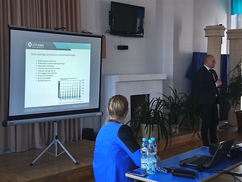 W Zespole Szkół w Teresinie odbyło się spotkanie z przedstawicielami firmy LOT Aircraft Maintenance Services sp. z o.o. Obszarem działalności spółki jest szeroko pojęta obsługa techniczna samolotów. Charakter prezentacji miał przybliżyć teresińskim uczniom sylwetkę przedsiębiorstwa oraz zachęcić do podejmowania tam w przyszłości pracy. LOT AMS zatrudnia prawie 1000 pracowników różnych stanowisk. Obsługa takiego procesu jak naprawa samolotów wymaga rozbudowy różnych obszarów przedsiębiorstwa: przede wszystkim logistyki oraz mechaniki. To tam uczniowie z Zespołu Szkół mieliby stawiać pierwsze kroki w spółce. Lotnictwo to dynamicznie rozwijająca się gałąź transportu, nic więc dziwnego że pracy w tym sektorze będzie coraz więcej. Niewykluczone, że w tym kierunku wkrótce szkoła podejmie ściślejszą współpracę z LOT Aircraft Maintenance Services sp. z o.o. O tym też dyskutowano podczas wspólnego spotkania gości z pracownikami i dyrekcją ZS Teresin.