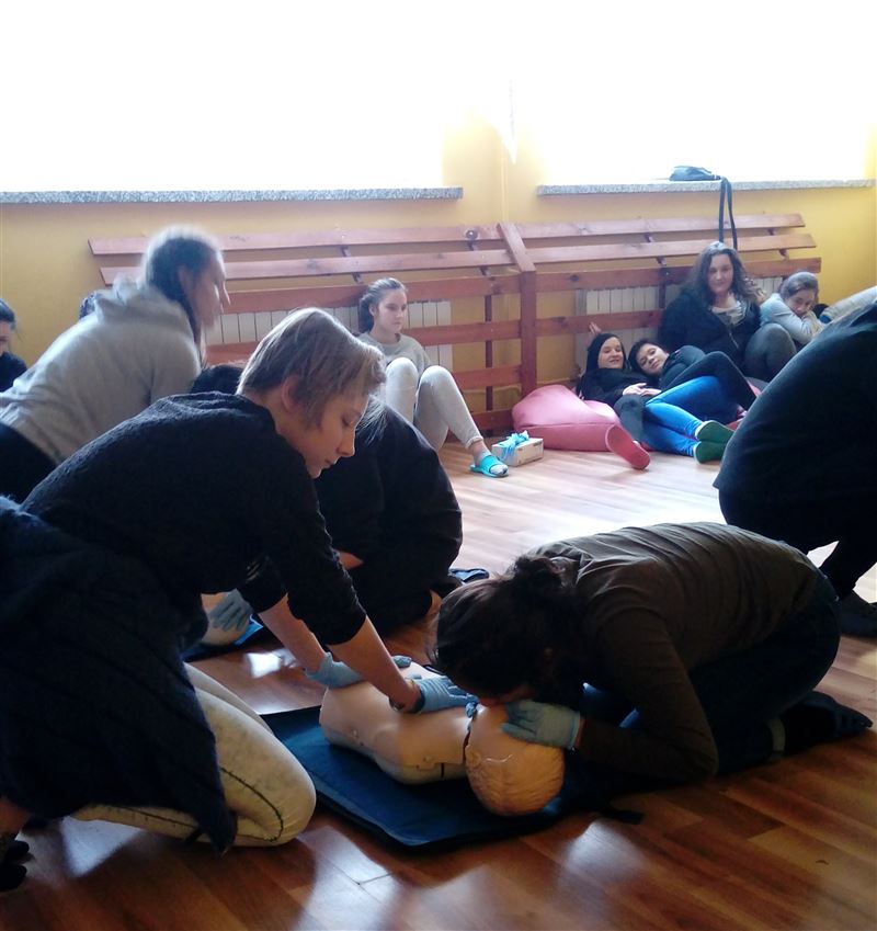 Po części teoretycznej rozpoczęła się część praktyczna. Pani ratownik pokazała na fantomie jak należy prawidłowo wykonać resuscytację krążeniowo-oddechową. Dziewczęta chętnie uczestniczyły w zajęciach, z dużym zaangażowaniem brały udział w ćwiczeniach praktycznych. Ewelina Jamka zaproponowała wychowankom udział z zajęciach na basenie. Dziewczęta będą miały możliwość doskonalić umiejętność pływania, a także uzyskać podstawowe kwalifikacje pływackie, tj. kartę pływacką.