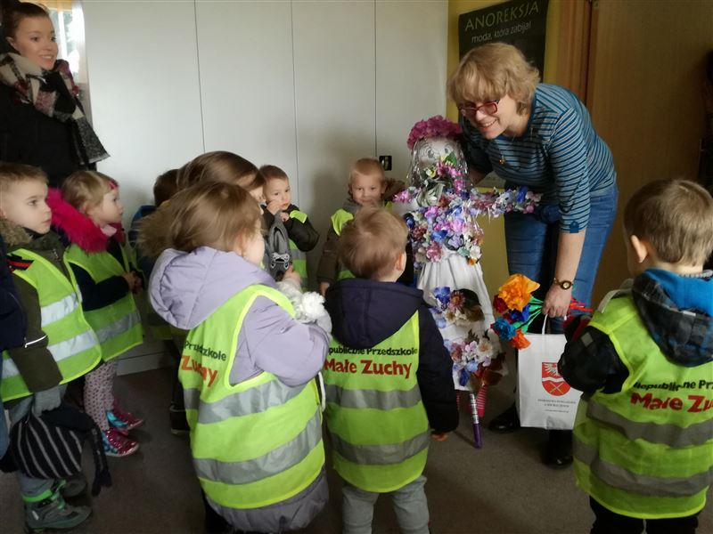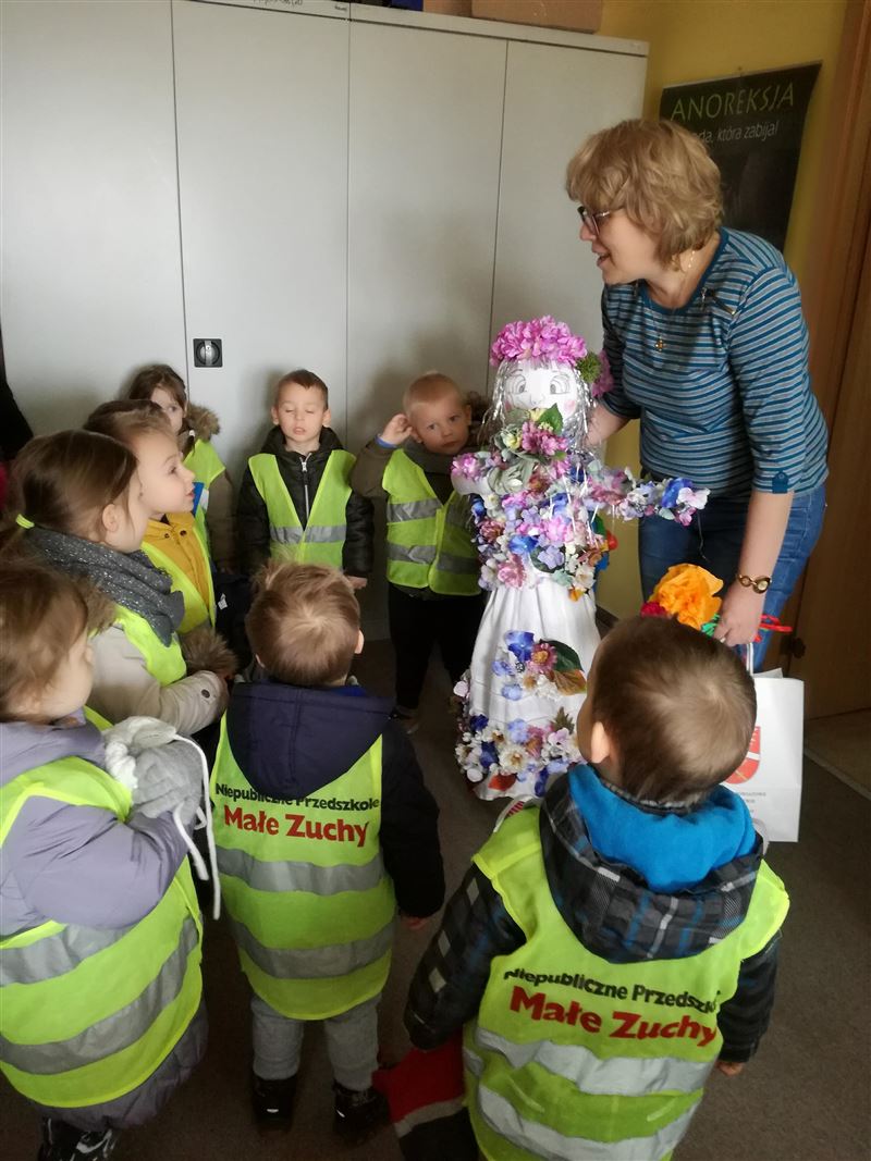 Jak nakazuje wiosenna tradycja orszak złożony z przedszkolaków z grupy Marchewki z Niepublicznego Przedszkola Małe Zuchy w Sochaczewie przybył do Starostwa, by ofiarować tradycyjną Marzannę. Kukła wykonana ze słomy, odziana w białą płócienną suknię, przyozdobiona wstążkami i kolorowymi kwiatami ma przywołać wiosnę i przepędzić zimę. A tymczasem wywołała dużo radości i uśmiechu. Starosta w podzięce odwdzięczyła się dzieciakom słodkim upominkiem.