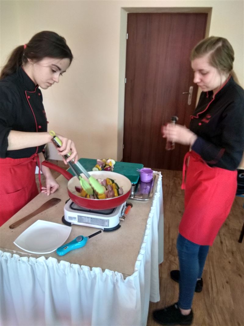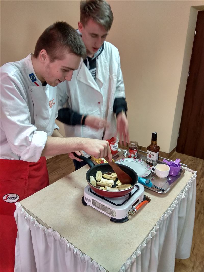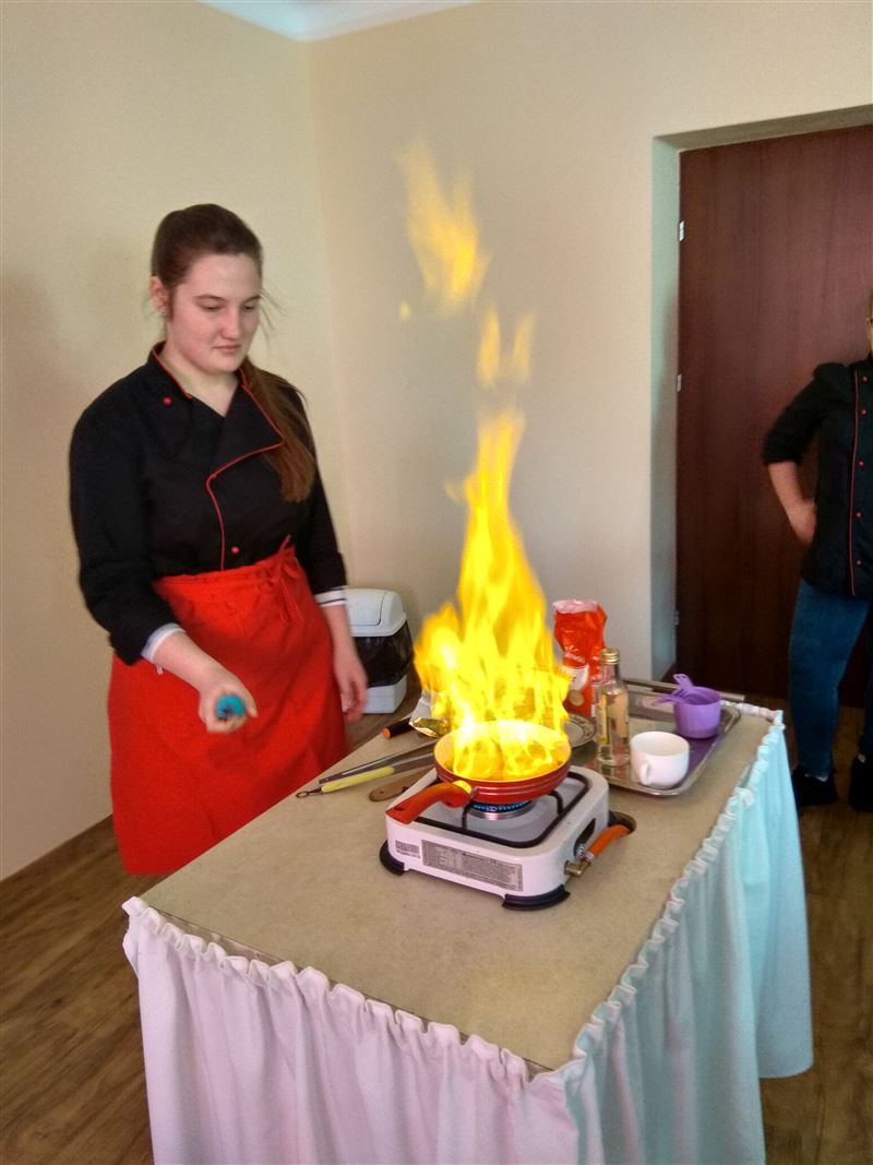 Uczniowie klasy II b Technikum Żywienia i Organizacji Usług Gastronomicznych w sochaczewskim ZSR CKU podczas zajęć z obsługi konsumenta flambirowali potrawy. Klasa została podzielona na dwuosobowe grupy, które podlewały potrawy alkoholem różnorodne owoce i potrawy a następnie podpalały. Jest to metoda obsługi bardzo widowiskowa, która sprawiła im wiele zabawy. Na kolejnych zajęciach uczniowie dzielili owoce przy stoliku konsumenta. Zdobyte umiejętności na pewno pomogą im w przyszłej pracy.