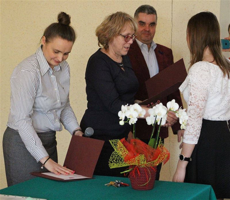 Stypendium wręczała Jolanta Gonta, starosta sochaczewski wraz z dyrektorem Powiatowego Zespołu Edukacji w Sochaczewie - Urszulą Opasiak.