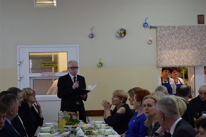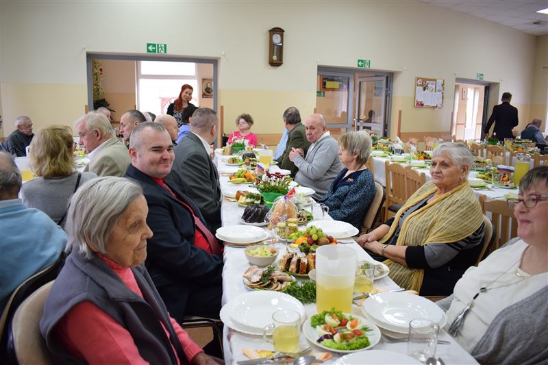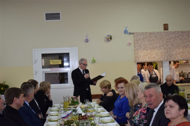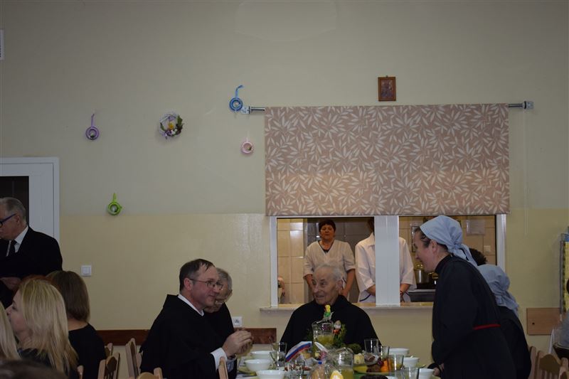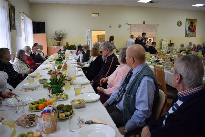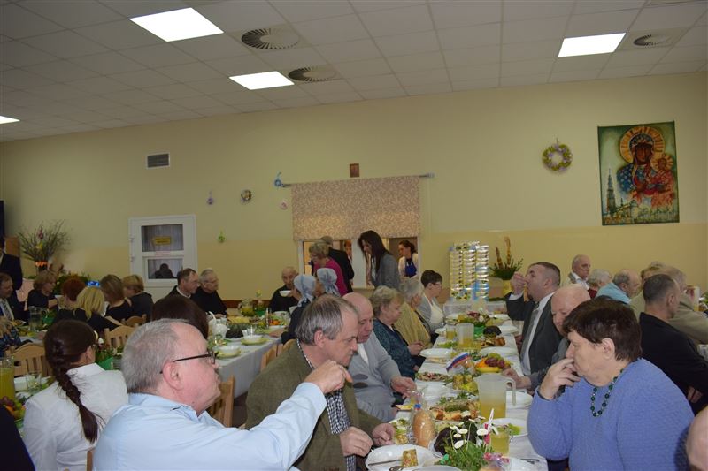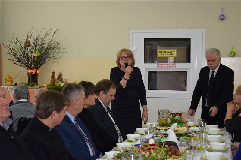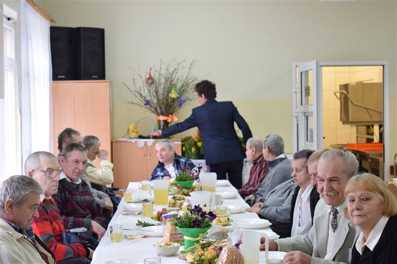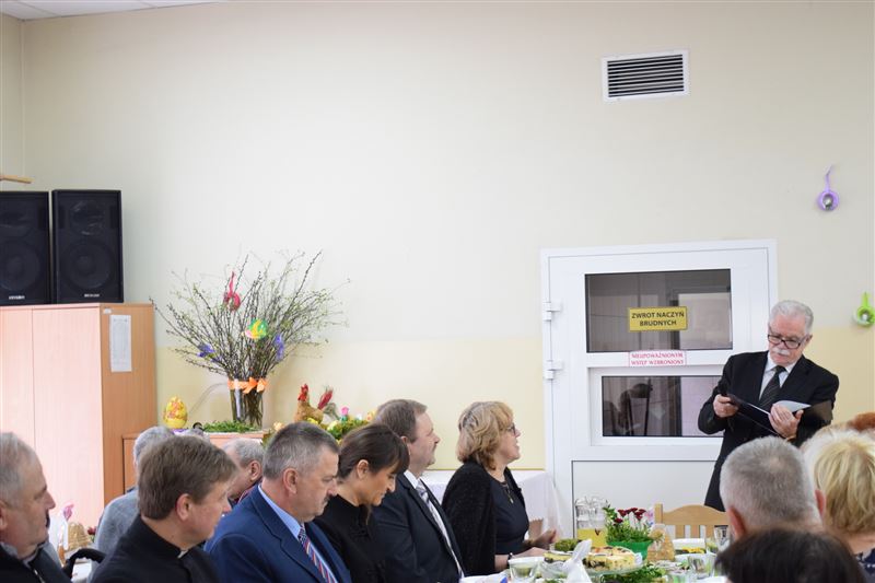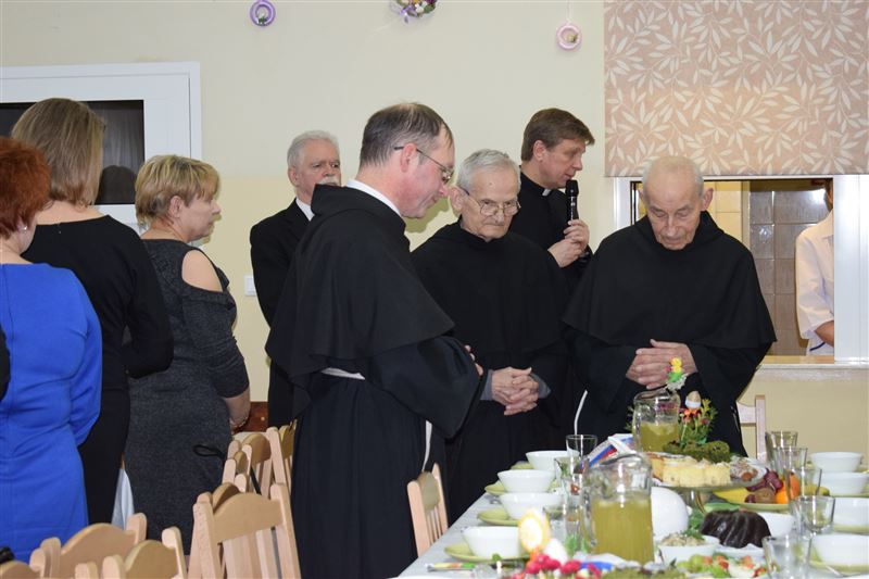 Wtorkowe popołudnie 27 marca br. na długo pozostanie w pamięci mieszkańców i pracowników Domu Pomocy Społecznej w Młodzieszynie, którzy uczestniczyli w uroczystym spotkaniu z okazji zbliżających się świąt Zmartwychwstania Pańskiego. To święto Wielkiej Nocy. Rozpoczynający się okres Wielkiego tygodnia zgromadził przy wielkanocnym stole wszystkich naszych przyjaciół księża – ks. proboszcz Dariusz Kuźmiński, s. Marietta Chlebus i s. Weronika Drozd oraz ojcowie i bracia z zakonu Ojców Franciszkanów w Niepokalanowie – o. Włodzimierz Machulak, br. Czesław Adamiak, br. Feliks Grabowiec. Swoją obecnością zaszczycili nas także: Jolanta Gonta – starosta sochaczewski, Tadeusz Głuchowski – wicestarosta, wiceprzewodniczące Rady Powiatu - Monika Wideńska, Wanda Dragan, a także Andrzej Grabarek, Bożena Samson – członkowie Zarządu Powiatu, Katarzyna Kajak – dyrektor Powiatowego Centrum Pomocy Rodzinie, Monika Pietrzyk – wójt Gminy Młodzieszyn, Joanna Kamińska – naczelnik Wydziału Polityki Społecznej i Ochrony Zdrowia Urzędu Miasta Sochaczew, Agnieszka Ambroziak – dyrektor Młodzieżowego Ośrodka Wychowawczego w Załuskowie, Beata Duda – zastępca dyrektora Młodzieżowego Ośrodka Wychowawczego w Załuskowie, Teresa Michałowska – dyrektor Dziennego Domu Pomocy Społecznej w Sochaczewie, Małgorzata Malczewska – dyrektor Szkoły Podstawowej w Młodzieszynie, Jolanta Bednarek – zastępca dyrektora Szkoły Podstawowej w Młodzieszynie, Krzysztof Sieczkowski – dyrektor Zakładu Komunikacji Miejskiej w Sochaczewie, Marta Fotruna – starszy inspektor w PCPR Sochaczew, Zofia Miszczak – dyrektor Miejskiego Przedszkola nr 7 im. Marii Montessorii w Sochaczewie, Paweł Orliński – przedstawiciel Rodzin Katolickich w Młodzieszynie, Sylwia Błaszczak – katechetka ze Szkoły Podstawowej w Młodzieszynie wraz z młodzieżą.