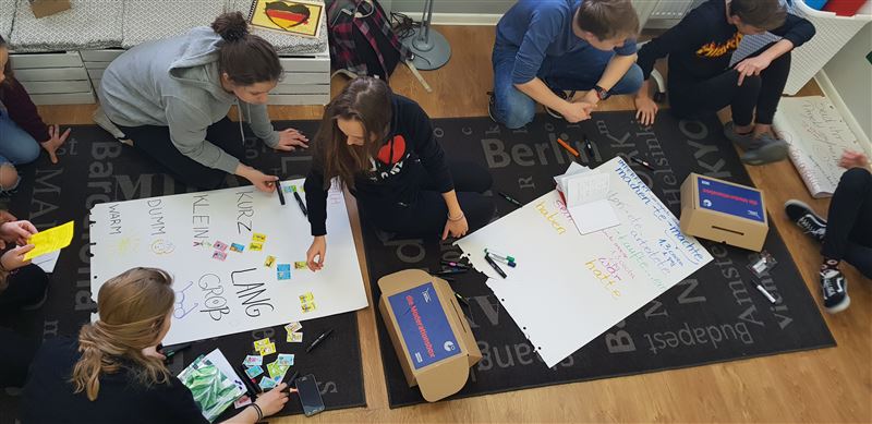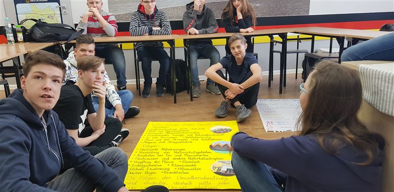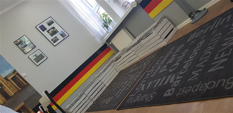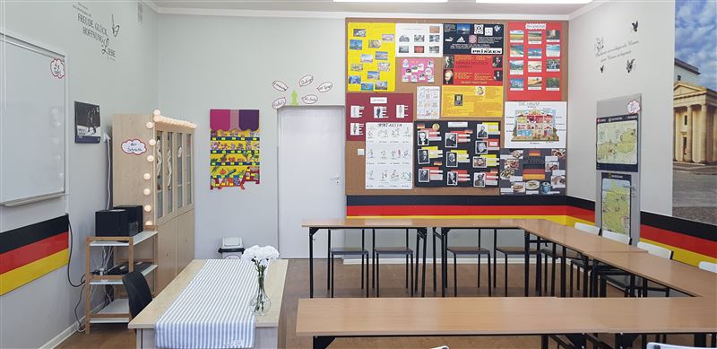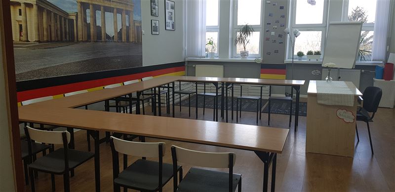 Lekcje języka niemieckiego w nowej sali to teraz sama przyjemność. Dzięki odpowiedniemu ustawieniu stolików czujemy jak z rodziną przy jednym stole. Czujemy się tu dobrze i wreszcie mamy ochotę, żeby przebywać w tej sali nie tylko na lekcji, ale również podczas przerw. Lekcje są prowadzone w bardziej interesujący sposób. Wykorzystujemy każdy element wprowadzony czy umieszczony w naszej klasie. Uczymy się z prac czy plakatów przez nas przygotowanych. Często pracujemy w grupach, co pozytywnie wpływa na efekty naszych działań.