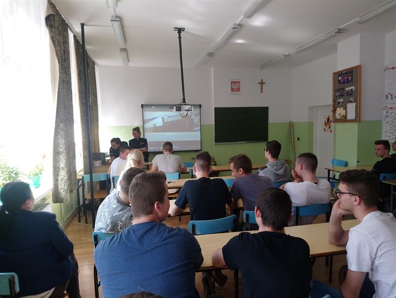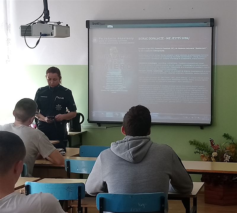 Uczniowie klasy II tklm w Zespole Szkół w Teresinie wraz z nauczycielami uczestniczyli w spotkaniu profilaktycznym przeprowadzonym przez policjantów z Posterunku Policji w Teresinie. Celem spotkania była profilaktyka uzależnień, jak również omówienie skutków prawnych zażywania i rozprowadzania dopalaczy, symptomów i objawów zażywania substancji uzależniających. Młodzież zapoznała się też z Krajową mapą zagrożeń, aplikacją „Moja komenda”. Na koniec odbyła się projekcja filmu profilaktycznego „Żyj bez dopalaczy. Bądź wolny”.