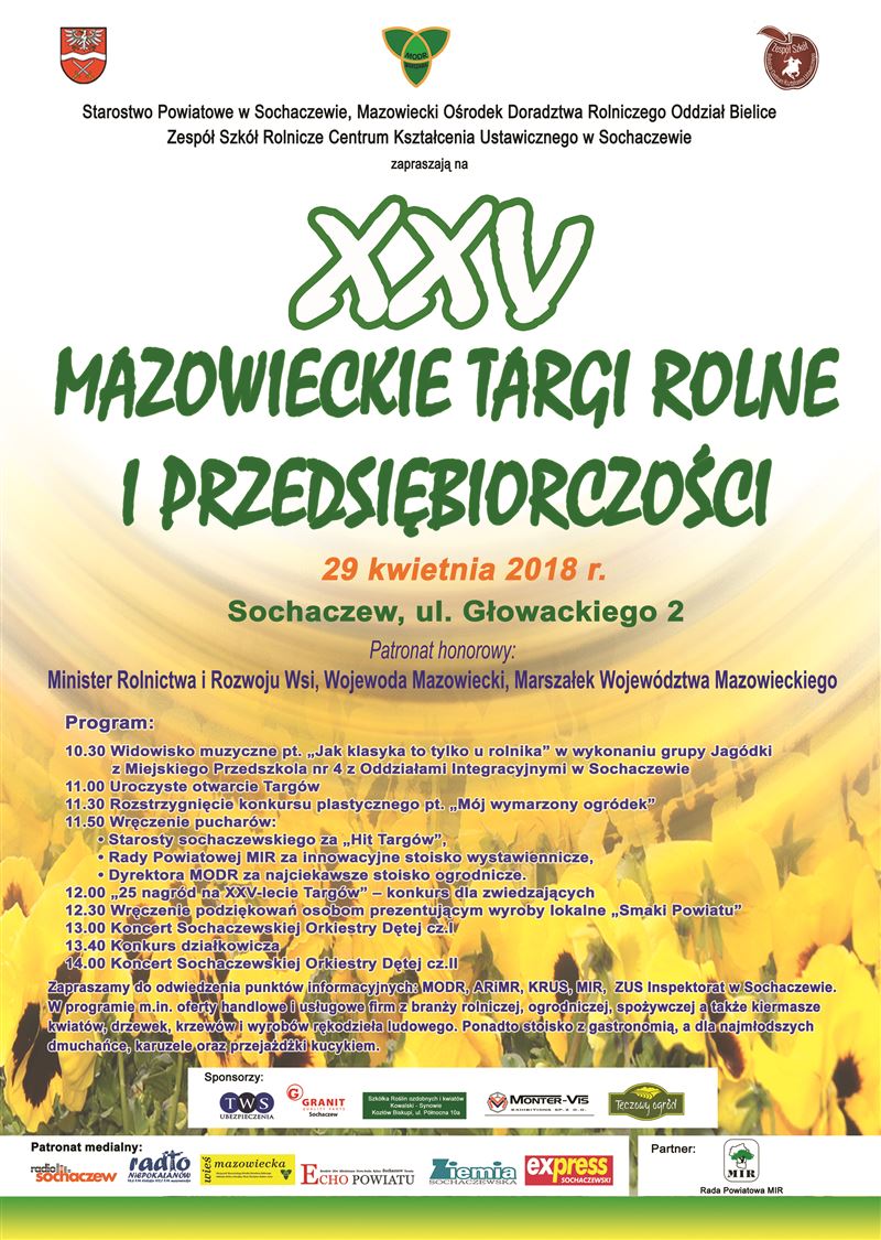 Sponsorzy konkursów: TWS Ubezpieczenia z Sochaczewa i Teresina, sklep rolniczy Granit w Sochaczewie, Monter Vis, Gospodarstwo Sadownicze Tęczowy Ogród z Brzozowca i Szkółka Roślin Ozdobnych i Kwiatów – Kowalski – Synowie z Kozłowa Biskupiego.