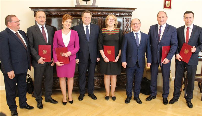 Jarosław Zieliński, sekretarz stanu w Ministerstwie Spraw Wewnętrznych i Administracji, wręczył w czwartek 19 kwietnia kolejne promesy dla sześciu mazowieckich samorządów, w tym dla powiatu sochaczewskiego. Środki przeznaczone na usuwanie skutków klęski żywiołowych, tym razem w łącznej kwocie 12 mln 850 tys. zł pozwolą na dofinasowanie 13 zadań. To już kolejna w krótkim czasie transza na rzecz odbudowy dróg, jaką przeznacza ministerstwo dla Mazowsza. Wśród dofinansowanych tych zadań znalazła się inwestycja w gminie Młodzieszyn polegająca na odbudowie powiatowej drogi Kamion – Witkowice. Wysokość dotacji wynosi 1,3 mln zł. Podczas spotkania w siedzibie MSWiA promesę osobiście odebrała starosta Jolanta Gonta. Dokument przekazali wspólnie minister Zieliński oraz Zdzisław Sipiera, wojewoda mazowiecki.