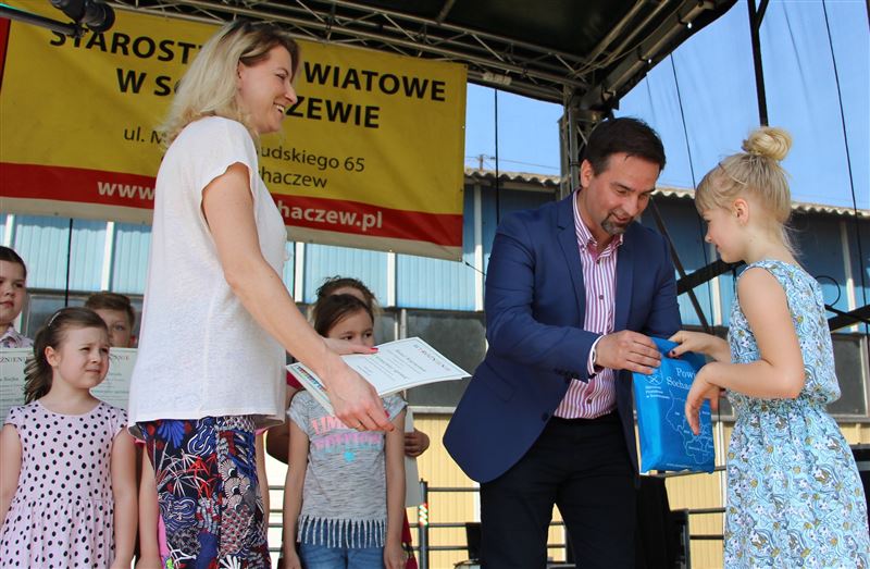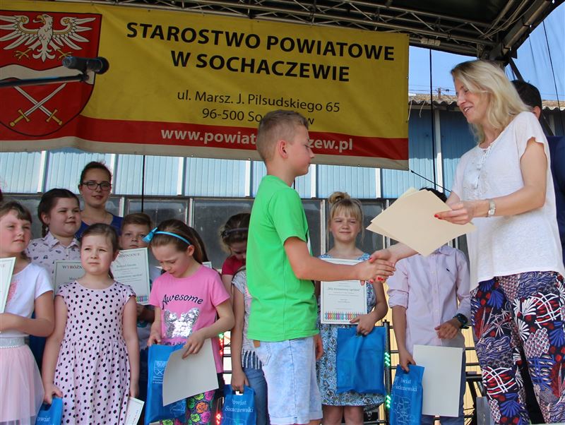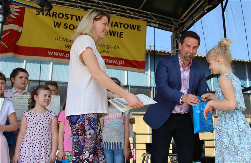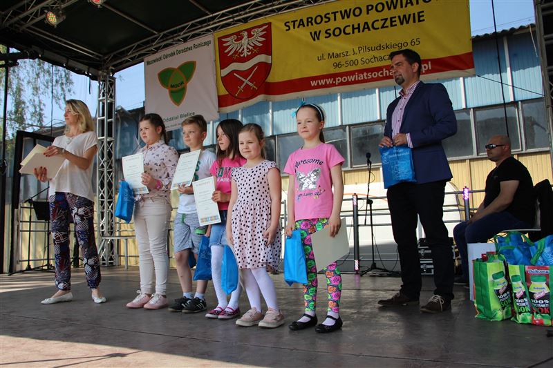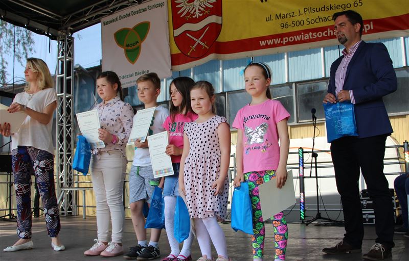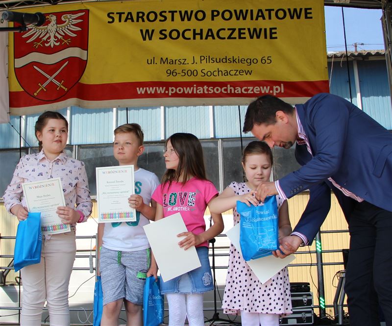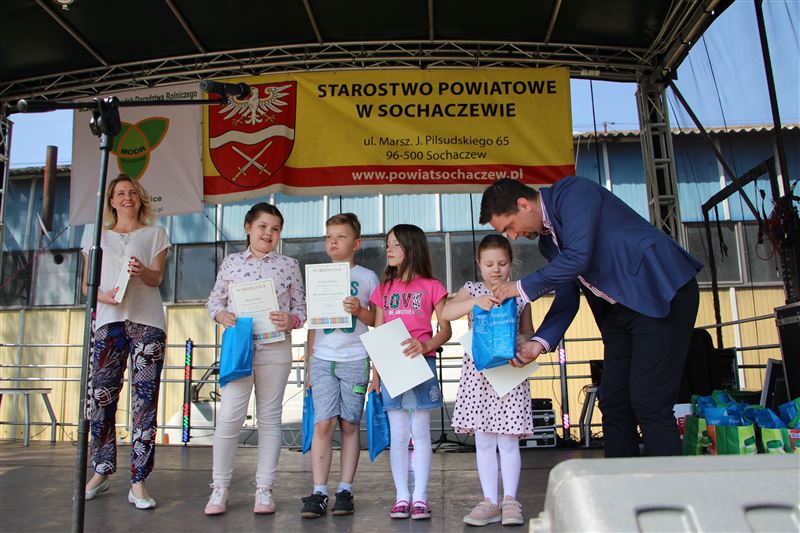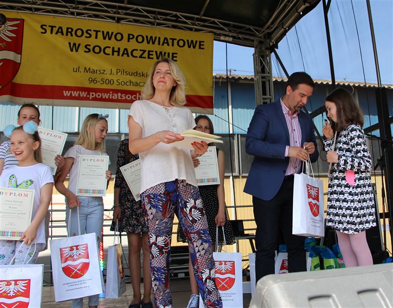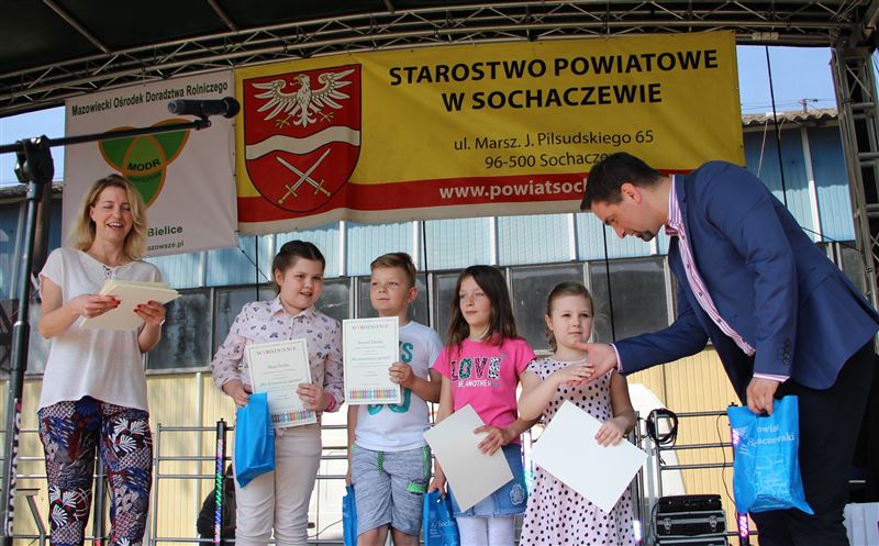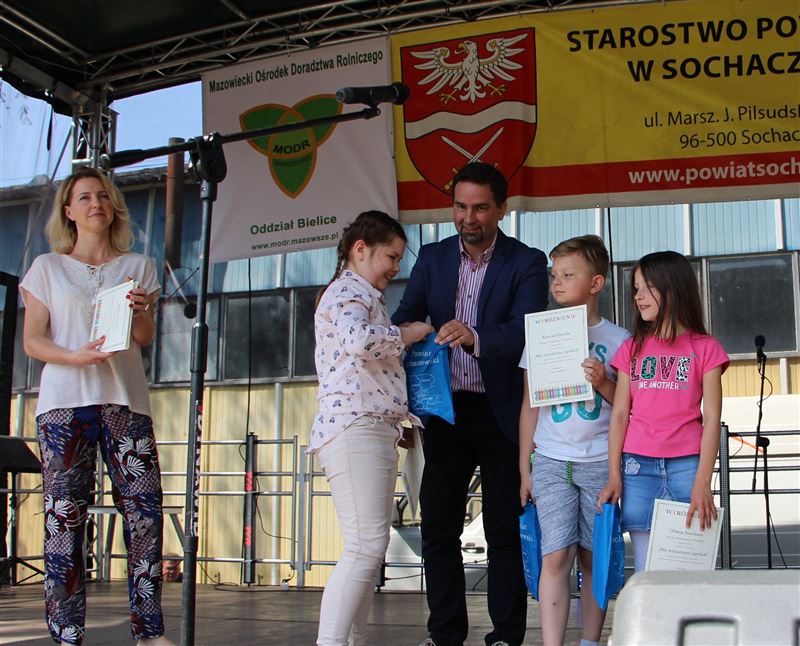 Nagrody i wyróżnienia na scenie podczas Targów wręczała Katarzyna Kajak, dyrektor PCPR i Marcin Odolczyk, rzecznik prasowy Starostwa Powiatowego w Sochaczewie, gratulując nagrodzonym artystycznych, plastycznych pasji do malowania.