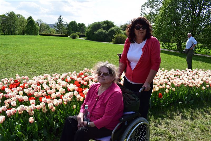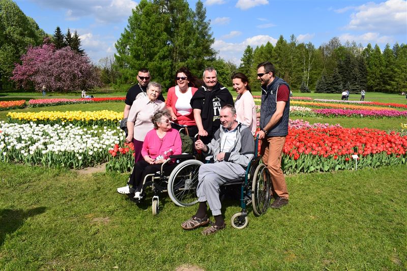 Po tak emocjonującym czasie nadeszła chwila na podróż do ogrodu botanicznego. Ogród rozlegający się na przestrzeni kilkudziesięciu hektarów sam przyciągał swoim urokiem. Pomogła w tym słoneczna pogoda, dzięki której podziwianie 50 tysięcy kwitnących tulipanów okazało się niezwykłą ucztą dla oczu, ale także fantastyczną okazją do zabawy wśród łanów kwitnących kolorami kwiatów. Przeróżne gatunki i odmiany pospolitych przecież kwiatów, dały uczestnikom wyjazdu możliwość odkrywania zupełnie innych walorów tulipanów. Zapach unoszący się w powietrzu napawał niezwykłym spokojem, ale także zaskoczeniem. Tak ogromna liczba kwiatów pobudziła do wytężonego działania zmysły wzroku i powonienia. Pobyt w ogrodzie botanicznym był również okazją do zorganizowania dla naszych Mieszkańców pikniku. Z koszem pełnym pysznego jedzenia spędzili oni piękne chwile, dzięki którym grupa jeszcze bardzie się zintegrowała.