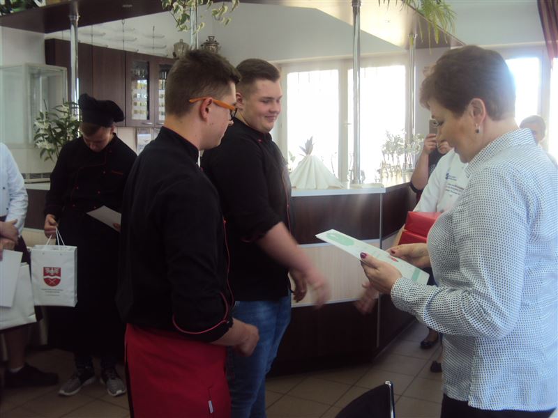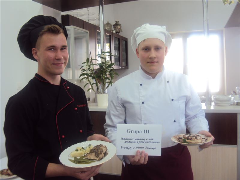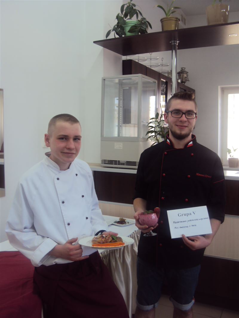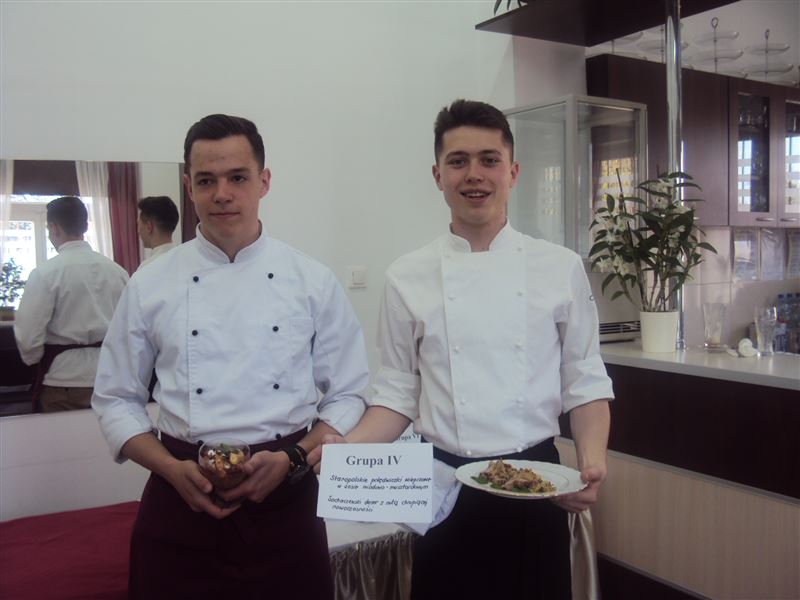 IV miejsce dwa zespoły Zespołu Szkół im. J.Iwaszkiewicza w Sochaczewie: Mateusz Krucz i Kacper Bryński; potrawa: faszerowana polędwiczka wieprzowa, deser: mus owocowy z bezą