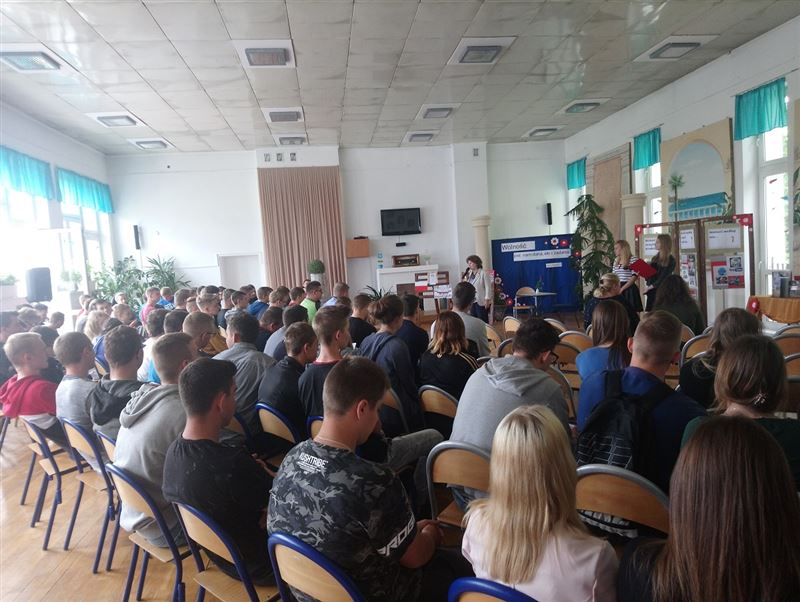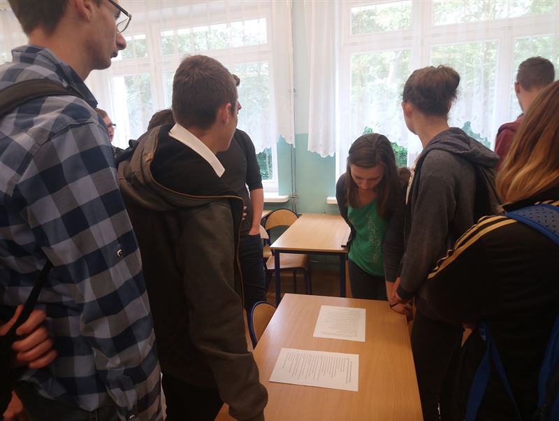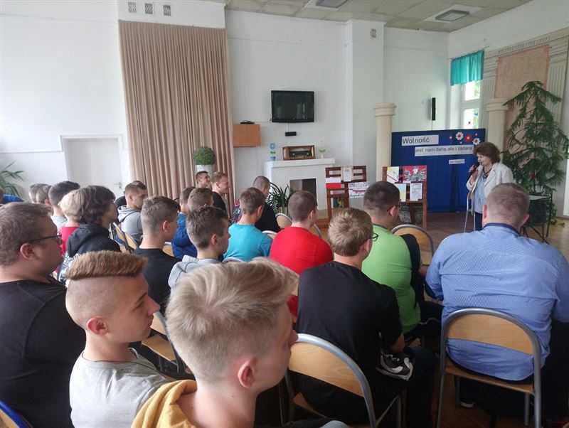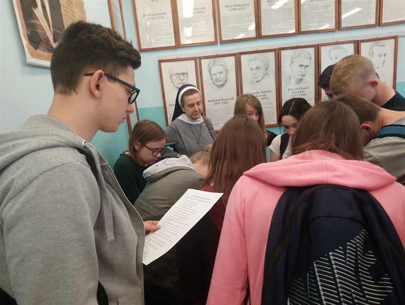Z tej okazji cała społeczność szkoły uczestniczyła w uroczystym apelu. Głos zabrała pani dyrektor Ewa Odolczyk, która wprowadziła wszystkich w ten wyjątkowy dzień. Następnie uczniowie obejrzeli prezentację multimedialną o patronie naszej szkoły przedstawioną przez uczennice klasy 1TL Alicję Plutę i Magdalenę Niziołek.