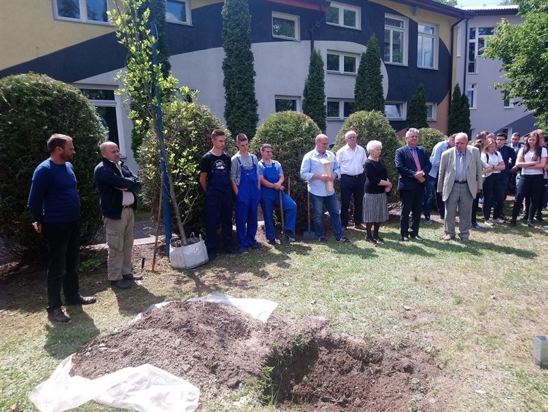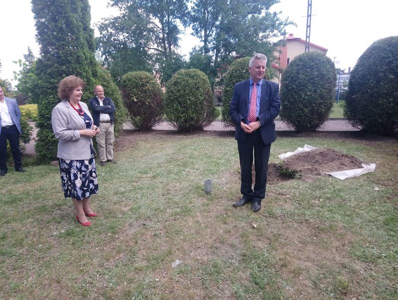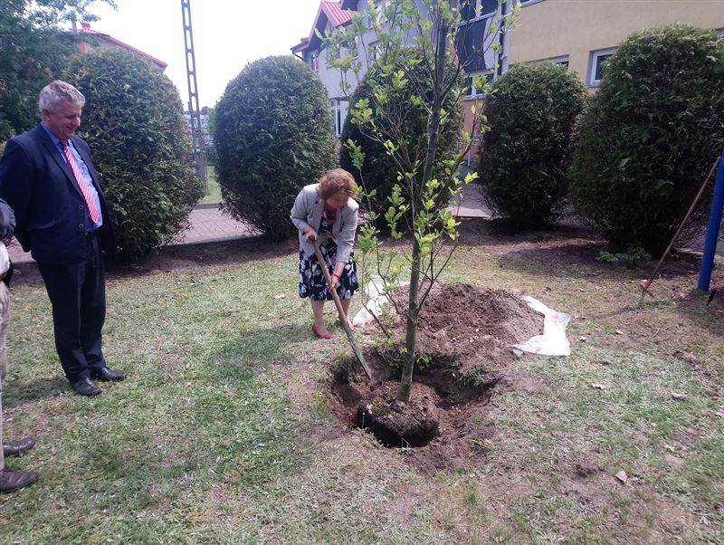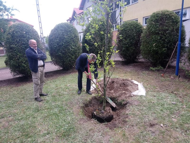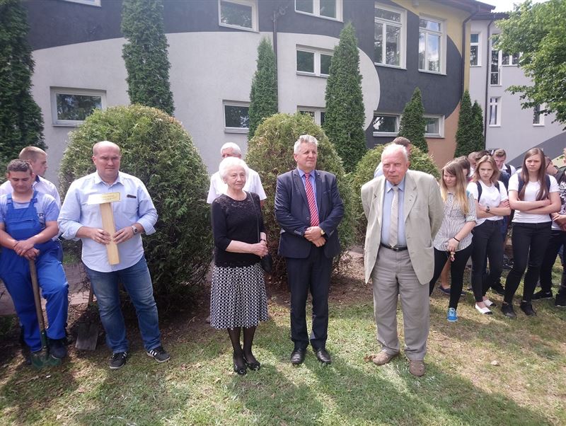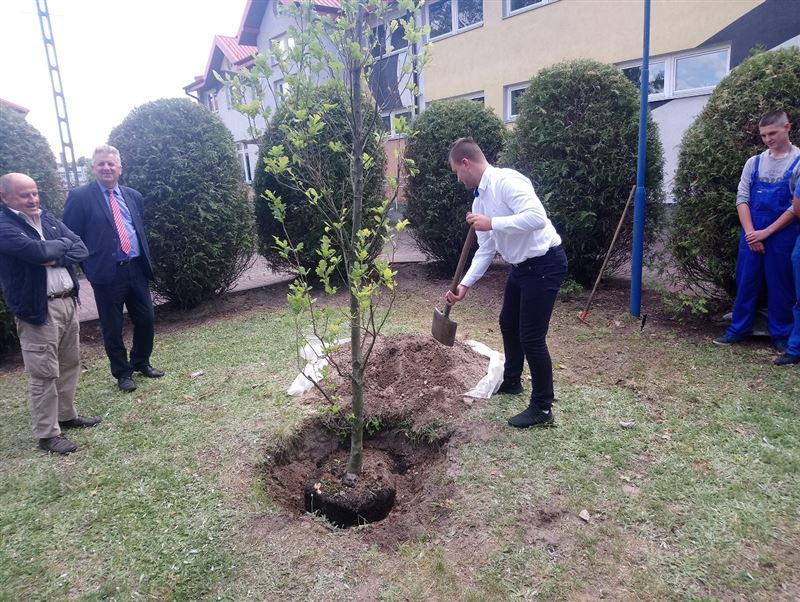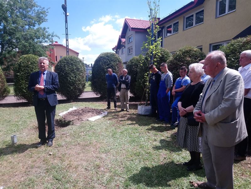W kolejnej części obchodów, na placu przed budynkiem szkoły, uczestniczyliśmy w zasadzeniu dębu. Drzewko zostało poświęcone śp. Stanisławowi Wójcikowi Honorowemu Obywatelowi Gminy Teresin, zmarłemu w 2016 r. Drzewo jest siedemnastym dębem zasadzonym dla osób zasłużonych dla niepodległej Polski oraz naszej lokalnej społeczności w ramach akcji „100 dębów na 100-lecie”. Zastępca wójta Gminy Teresin Marek Jaworski przypomniał zebranym sylwetkę Stanisława Wójcika, który do Teresina przybył z ziemi świętokrzyskiej. Pracę w teresińskiej szkole rozpoczął w 1973 roku. Tu dał się poznać jako świetny pedagog, ale przede wszystkim jako wzorowy, wymagający wychowawca. Po sześciu latach pracy nauczycielskiej objął stanowisko dyrektora szkoły. Od początku uchodził za osobę zdeterminowaną i ukierunkowaną na właściwy cel, okazał się dobrym administratorem i gospodarzem tej placówki. Dla realizacji ważnych lokalnych projektów potrafił wyzwalać w ludziach społeczną energię oraz skutecznie pozyskać rodziców i całe środowisko. Szkoła mieszcząca się dotychczas w drewnianych barakach otrzymała działkę, na której w 1995 roku stanął nowy piękny obiekt szkolny. W 1998 roku wyszedł z inicjatywą i doprowadził do wybudowania przy szkole nowoczesnej hali sportowej, przy czym, dając wzór wychowawczy, sam często brał udział w pracach budowlanych. Był wyjątkowym lokalnym menedżerem o ogromnej determinacji i żelaznej konsekwencji. Śp. Stanisław Wójcik zawsze otwarty był na inicjatywy teresińskiego samorządu, czynnie angażując się w organizację wielu ważnych gminnych inicjatyw. W 2002 roku Rada Gminy Teresin nadała Stanisławowi Wójcikowi tytuł „Honorowego Obywatela Gminy Teresin”.
