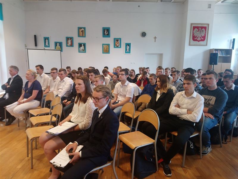 Uczniowie Magdalena Gmurek i Patryk Langa wprowadzili nas w tematykę spotkania i przedstawili sylwetki Wielkich Polaków, którzy przyczynili się do odzyskania przez Polskę niepodległości 11 listopada 1918 r. Cała społeczność szkolna z ogromnym zainteresowaniem wysłuchała prelekcji Witolda Sadowskiego, który jako dziewięcioletni chłopiec był świadkiem śmierci ojca z rąk niemieckich oprawców w czasie Powstania Warszawskiego. Nasz Gość opowiadał o okrucieństwie wojny i późniejszych trudnych warunkach życia tuż po wojnie. Podkreślił, jak ważną rolę pełni w życiu człowieka wolność i niepodległość. Życzył nam abyśmy wnieśli godny wkład w rozwój swojego regionu i Ojczyzny.