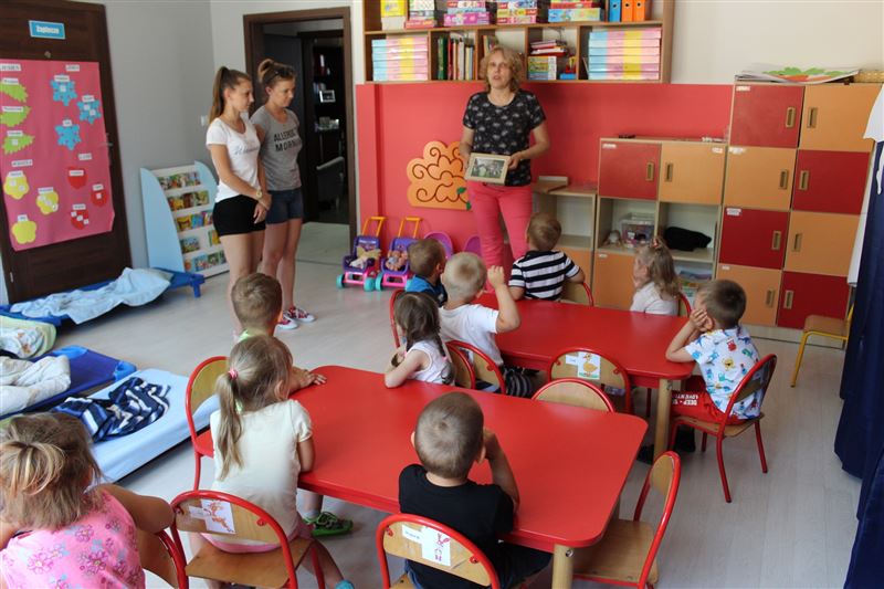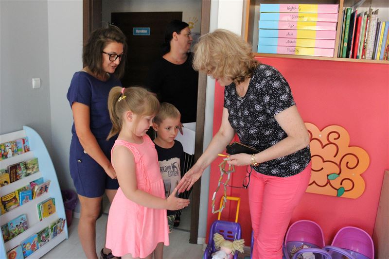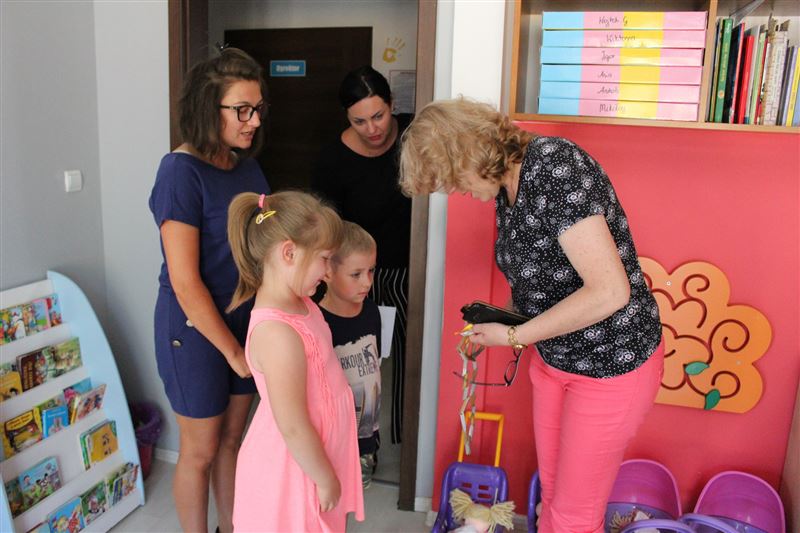 Na zaproszenie „Wiewiórek” Jolanta Gonta przybyła do przedszkola przy ul. Załamanej 1. Towarzyszył jej Marcin Odolczyk, rzecznik prasowy Starostwa. – Bardzo miło wspominam waszą wizytę w naszym urzędzie. Przyszliście wtedy, by pożegnać zimę a powitać wiosnę i faktycznie, od tej pory jest słonecznie i ciepło. Dostałam wspaniały prezent, więc i ja również mam coś dla was, można powiedzieć na przywitanie lata – z radością mówiła do maluchów starosta, po czym wręczyła im upominki, a na pamiątkę zdjęcie z marcowego spotkania w Starostwie. Z kolei, bardzo ucieszone przedszkolaczki obdarowały gościa własnoręcznie zrobionym naszyjnikiem.