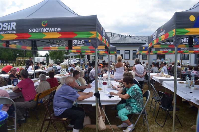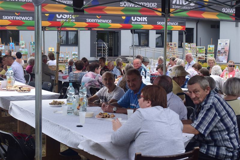 Wtorkowe spotkanie było „I Truskawkowym Świętem Seniora”. Na placu wokół Domu zgromadzili się goście z zaproszonych placówek. Na wszystkich czekała uśmiechnięta Dyrektor Domu p. Małgorzata Greta. Po powitaniu gości rozpoczął się występ artystyczny Mieszkańców Skierniewickiego Domu, który wypełniony był piękna paletą różnych piosenek. Wiele z nich poderwało do tańca osoby zebrane na wspólnej zabawie. Podczas spotkania można było również podziwiać niezwykłe prace malarskie, wykonywane różnorodną techniką w ramach pracowni malarskiej.