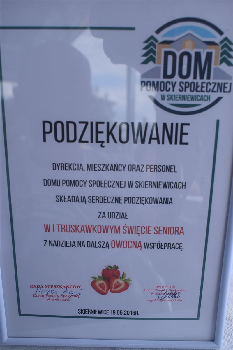Dziękujemy Organizatorom za zaproszenie. Mamy nadzieję, że Truskawkowe Święto Seniora na stałe wpisze się w kalendarz wydarzeń Domu Pomocy Społecznej w Skierniewicach, w którym również nasi Mieszkańcy będą mogli brać corocznie udział.