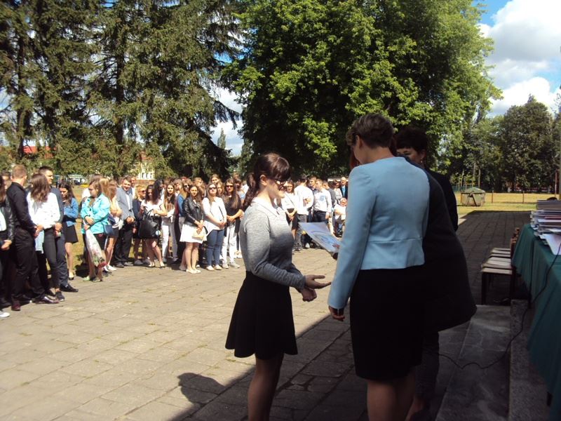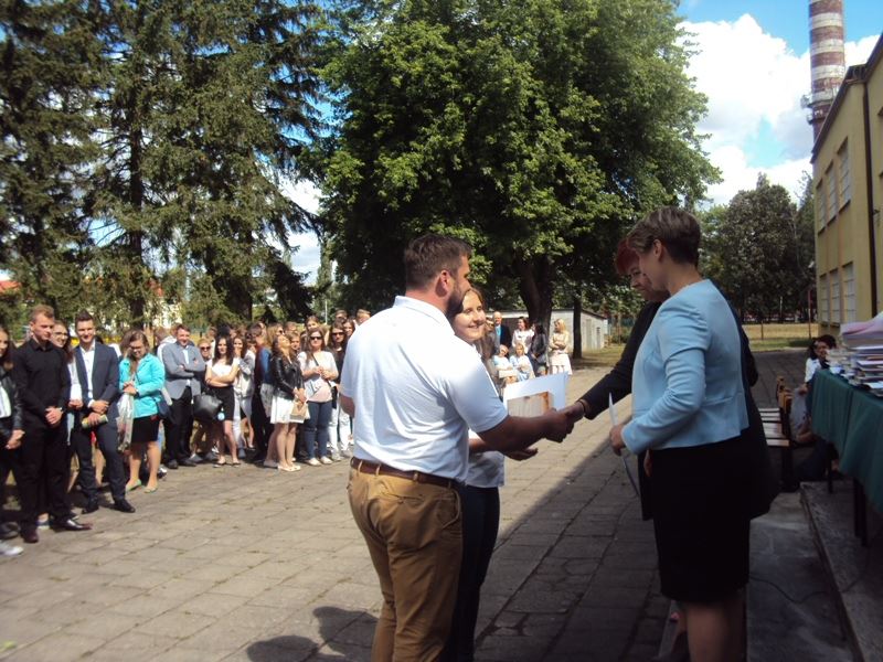 W tym dniu świadectwa ukończenia szkoły wręczono absolwentom Zasadniczej Szkoły Zawodowej kształcącej w zawodzie kucharz i sprzedawca. Pani Dyrektor życzyła im sukcesów w dalszym życiu zawodowym i osobistym.